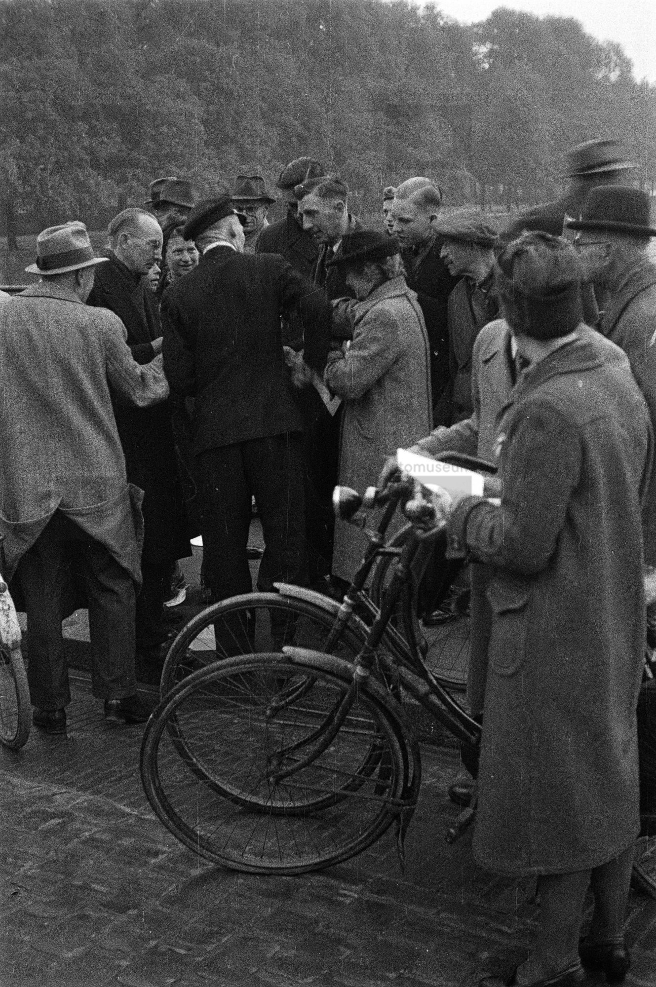 Een verzamelde menigte op straat ten tijde van de be...