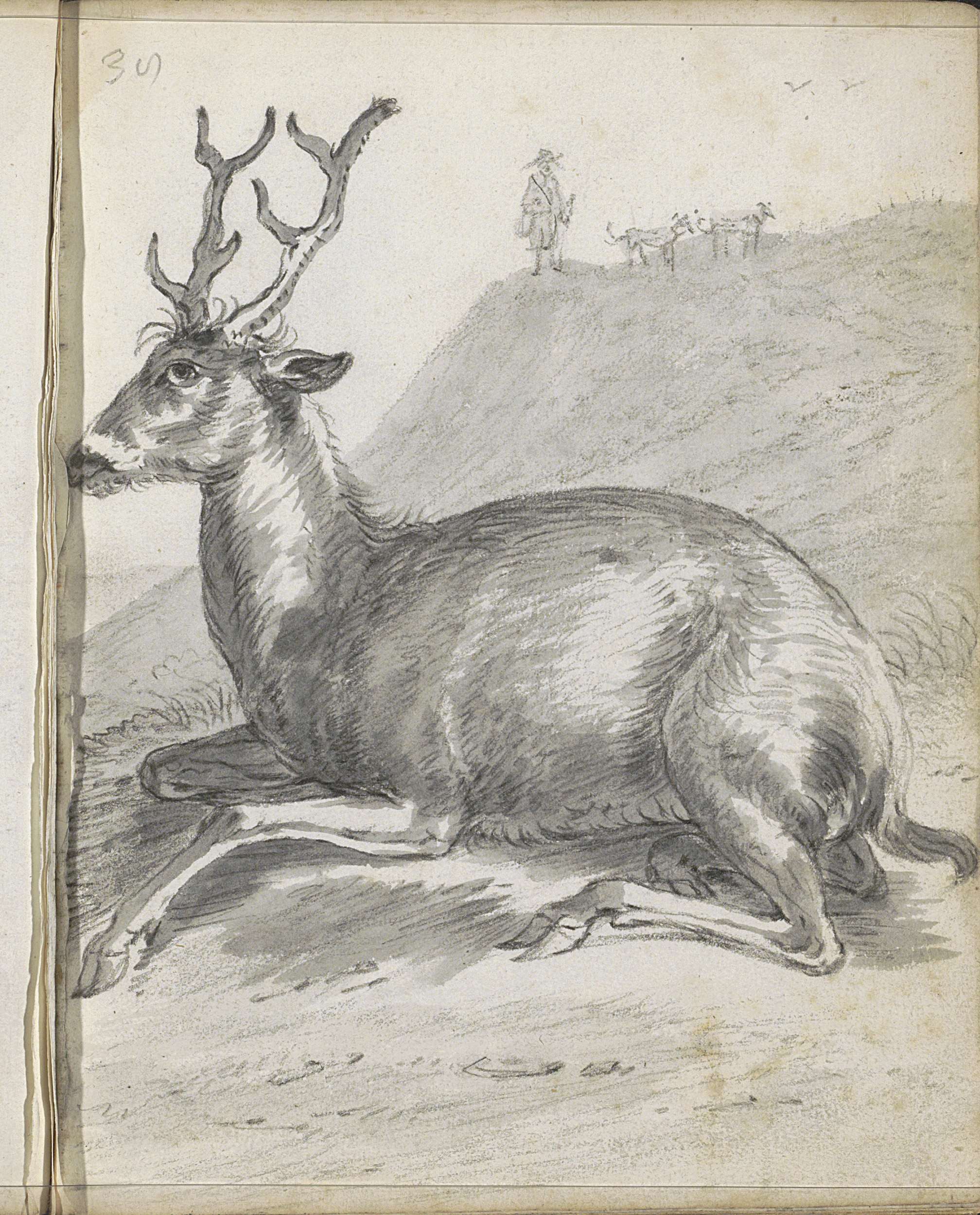 Heuvellandschap met liggend hert
