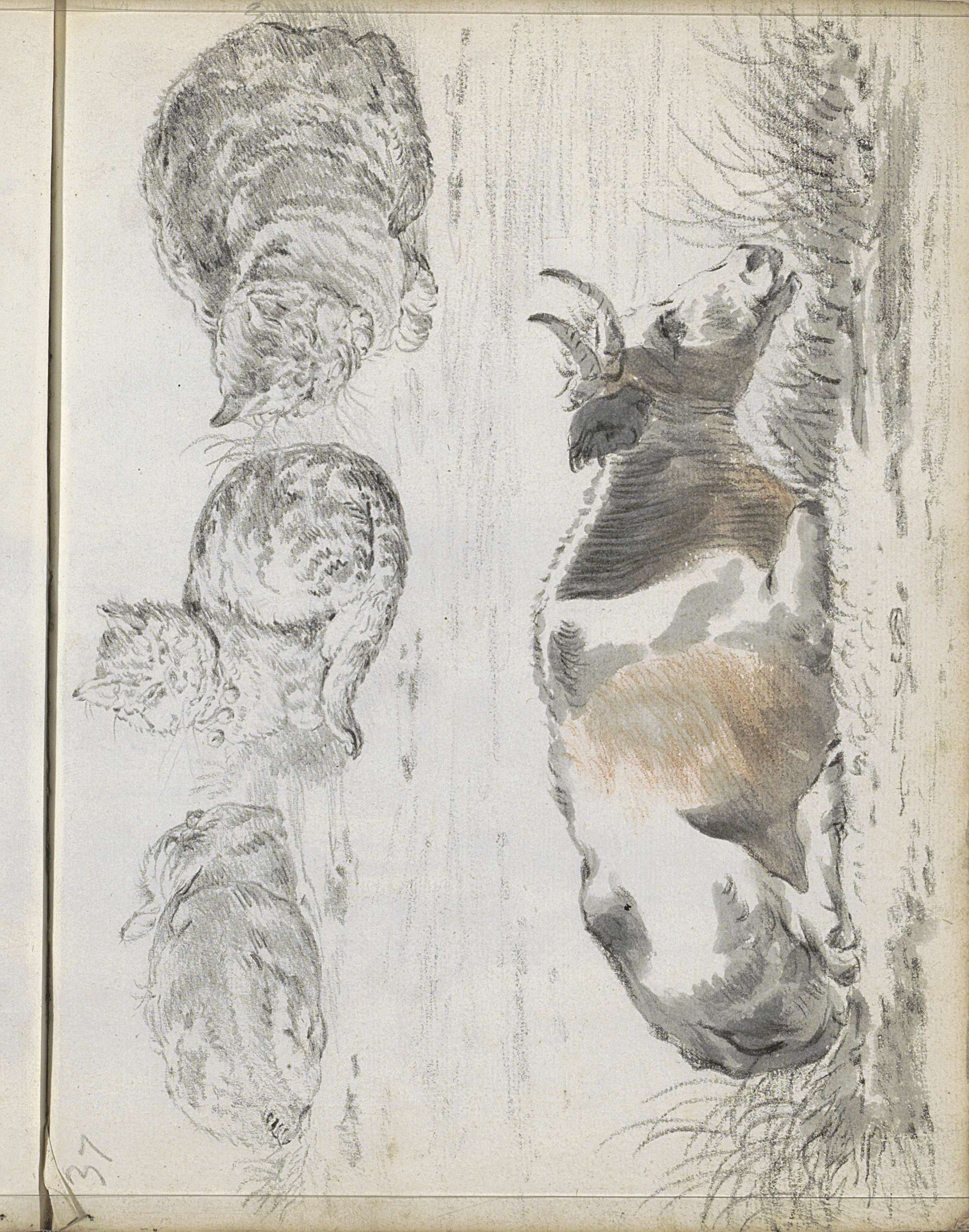 Drie katten en een liggende koe