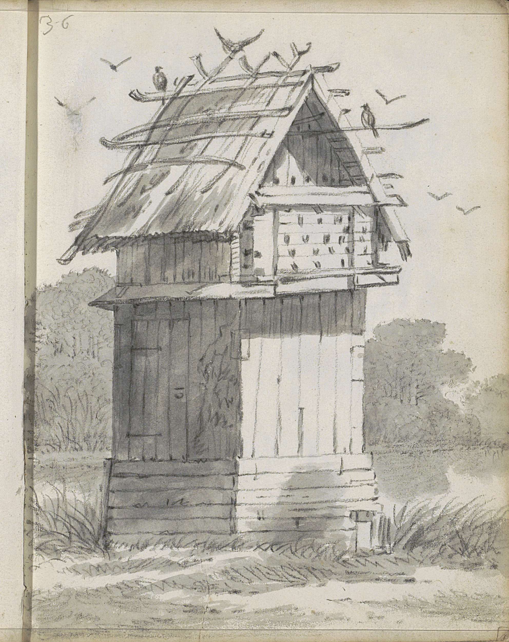 Duiventil in een landschap