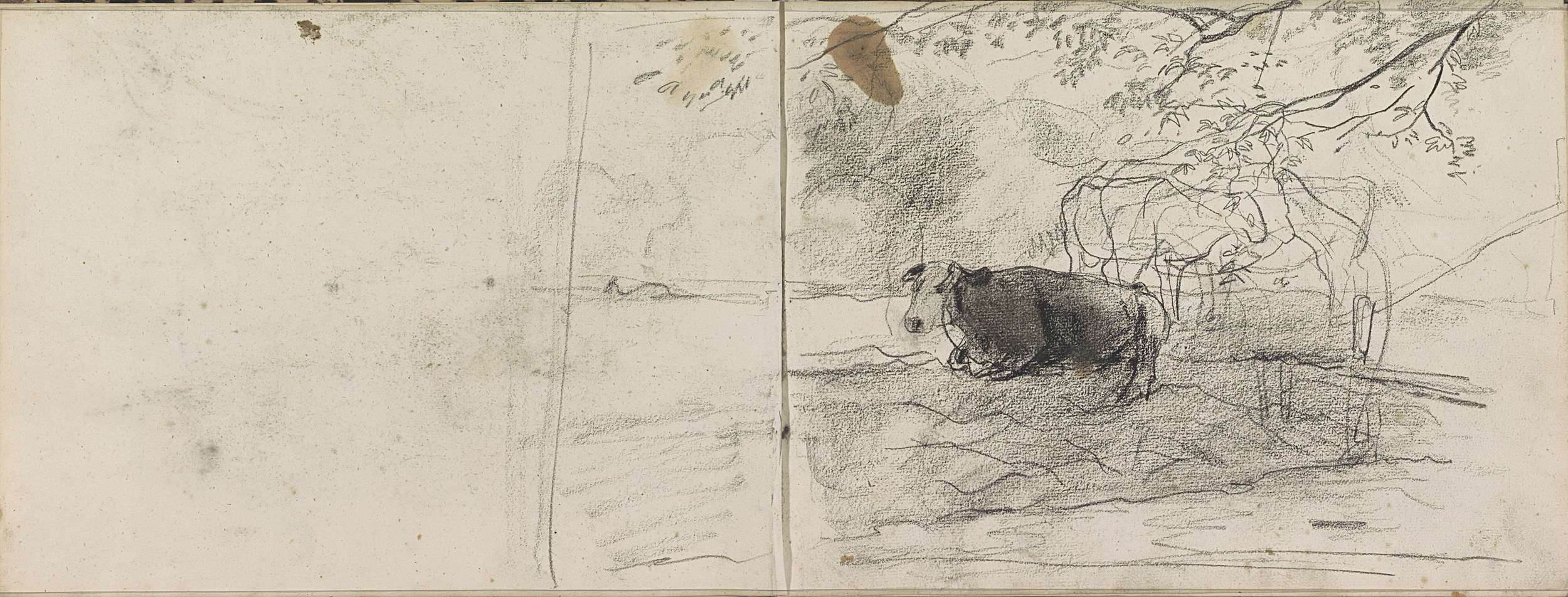 Koe liggend onder het bladerdek van een boom