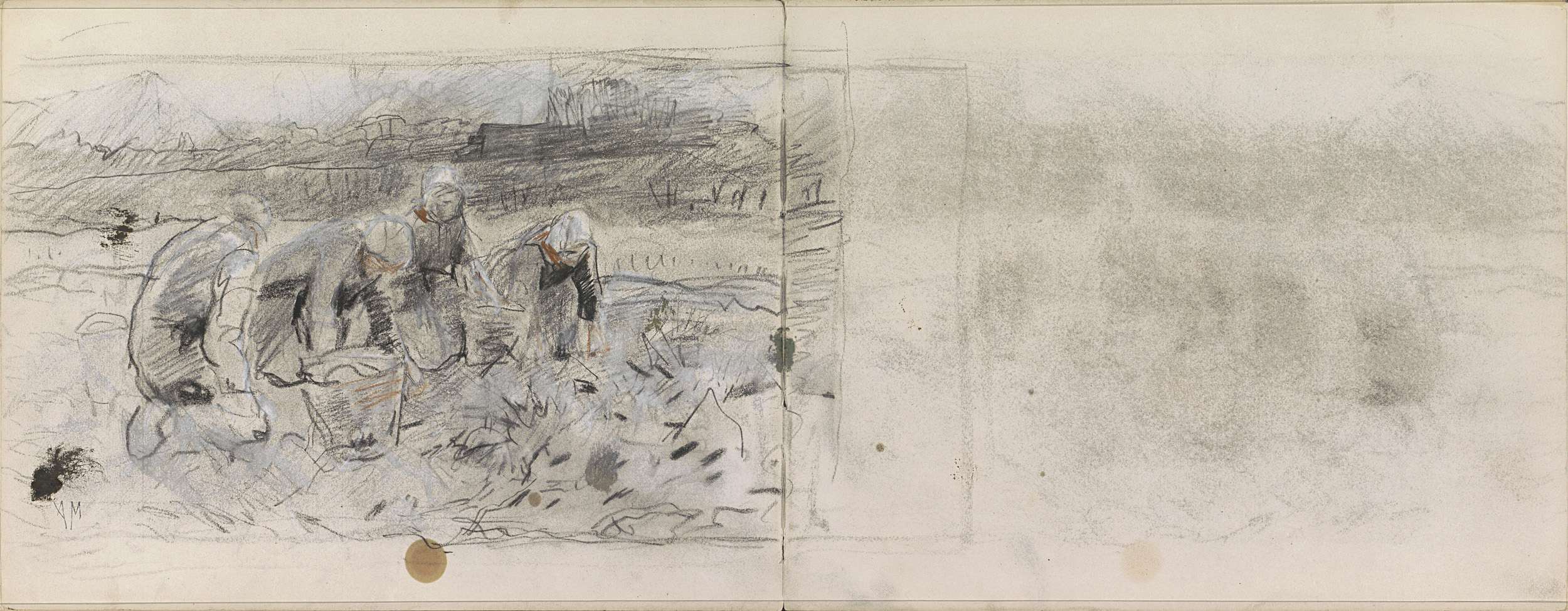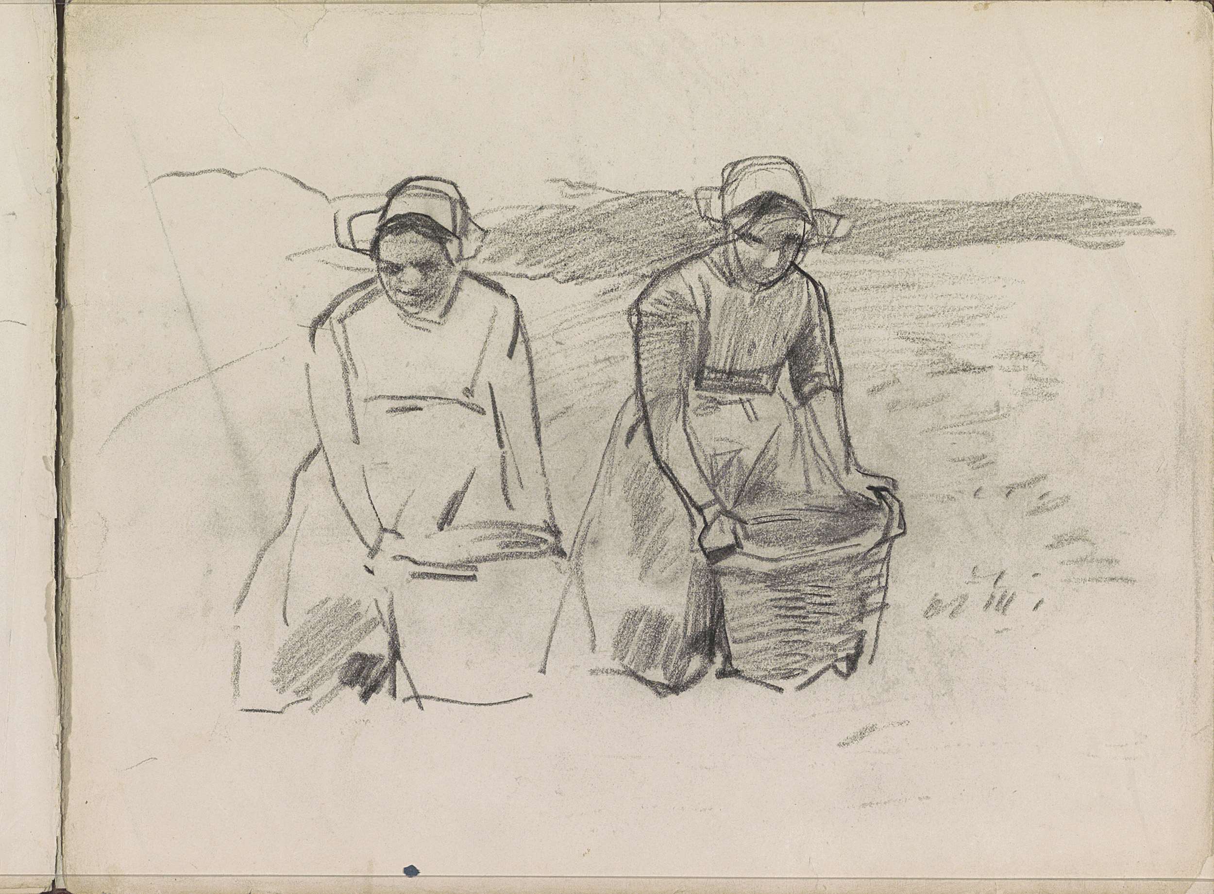 Twee vrouwen met manden in een landschap