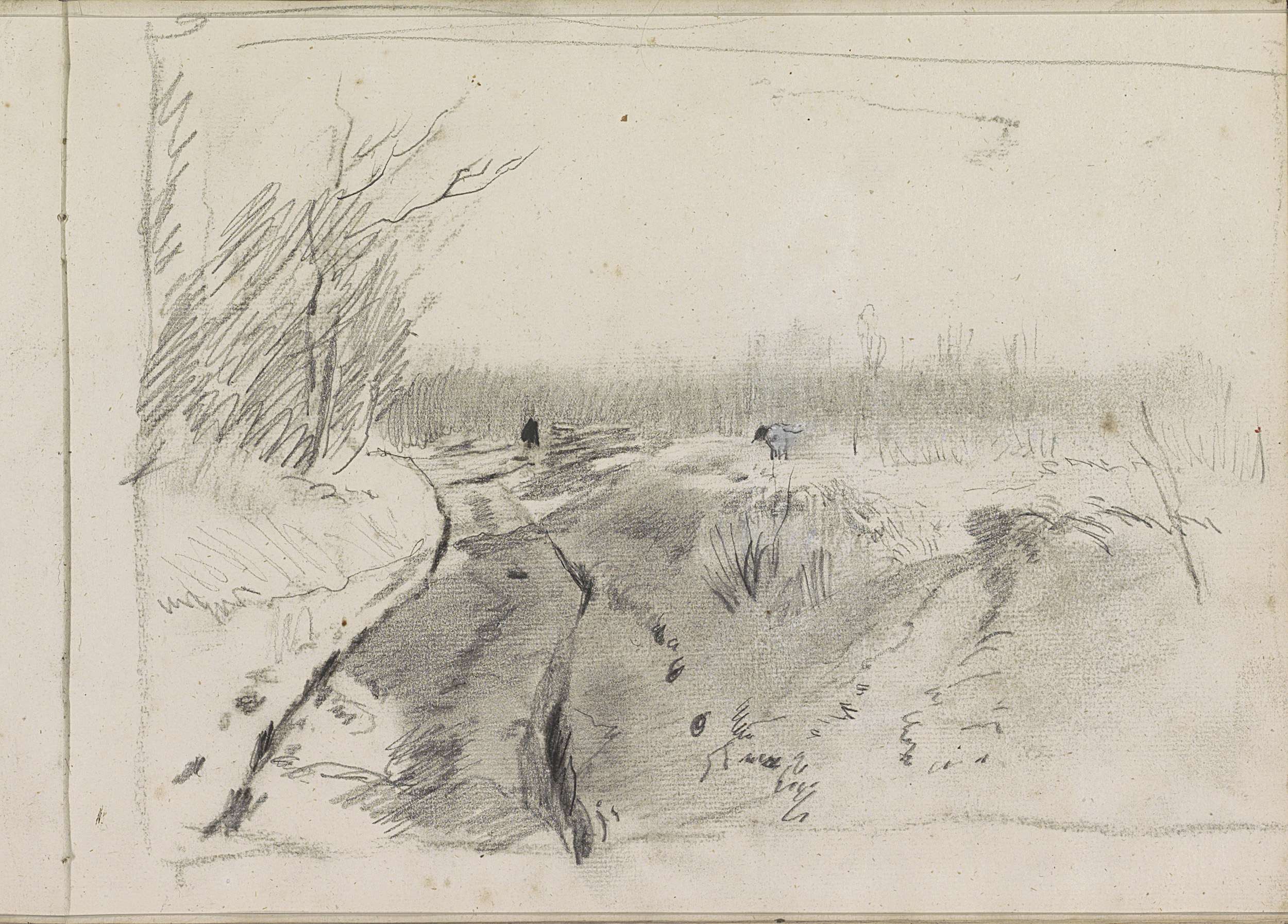 Landschap met een greppel