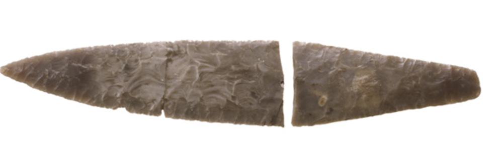dolk van vuursteen - in twee stukken gebroken -, beg...