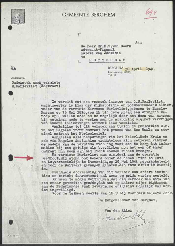 Brief van de voormaligen stadscommandant van de voor...