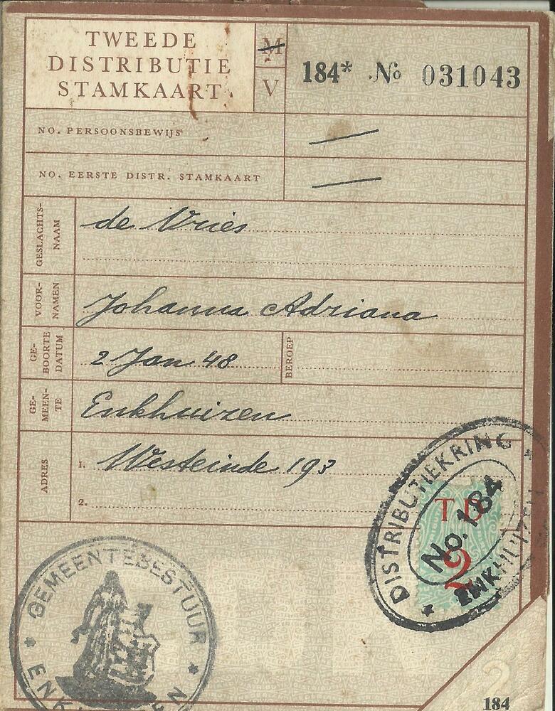 Tweede Distributiestamkaart op naam van , van der He...