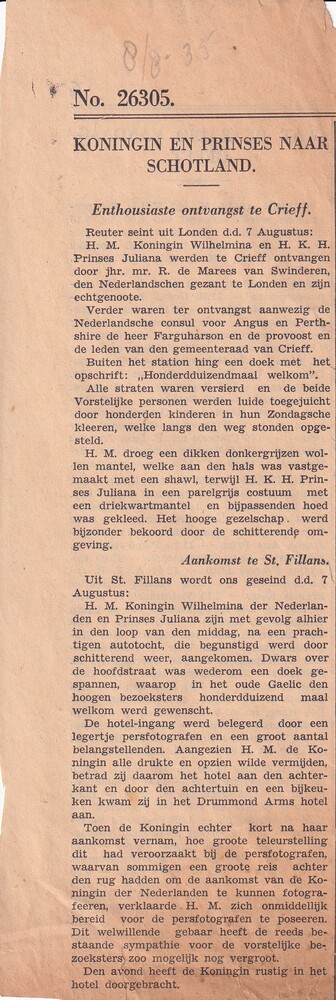 Krantenartikel 8 augustus 1935