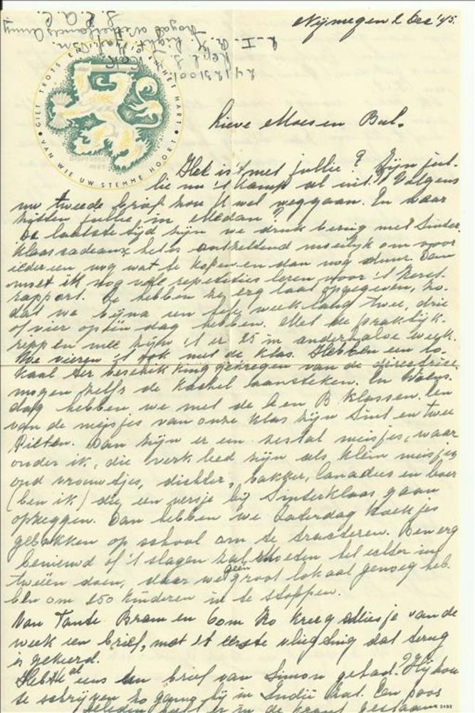Brief van Ank geschreven te Nijmegen 2 december 1945...