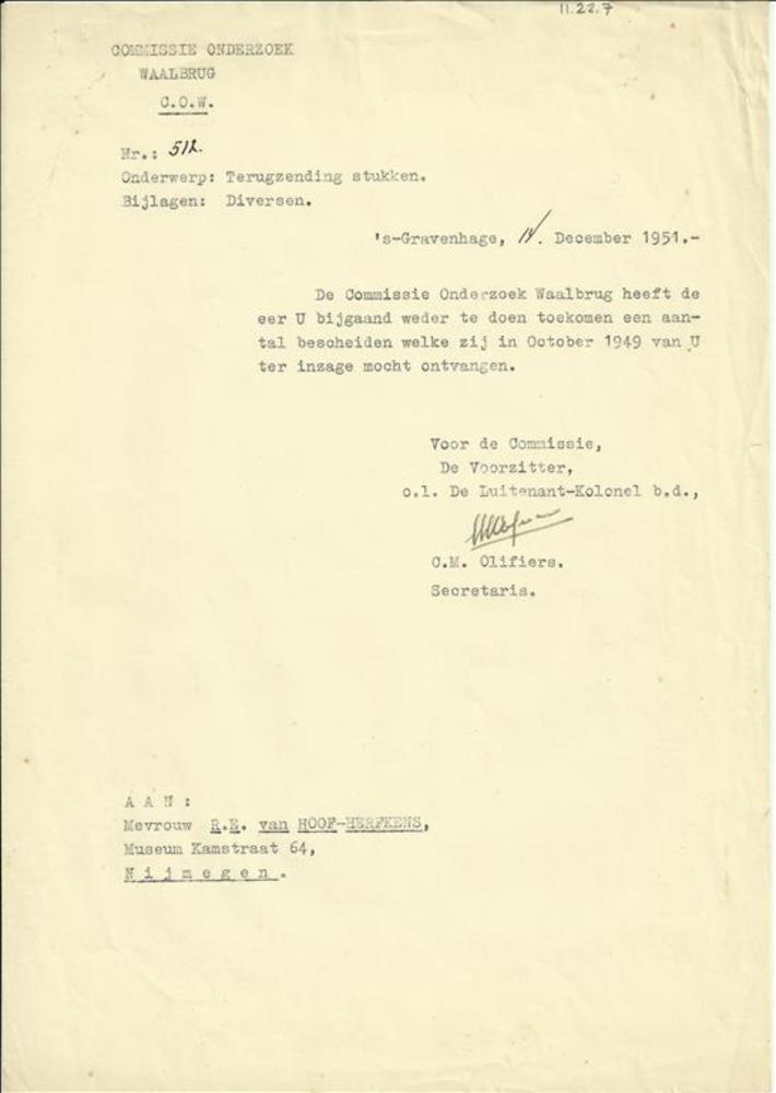 brief Commisie Onderzoek Waalbrug, 14 december 1951