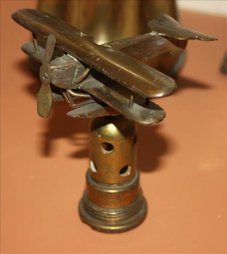 Koperen vliegtuigje gemonteerd op een slaghoedje van...