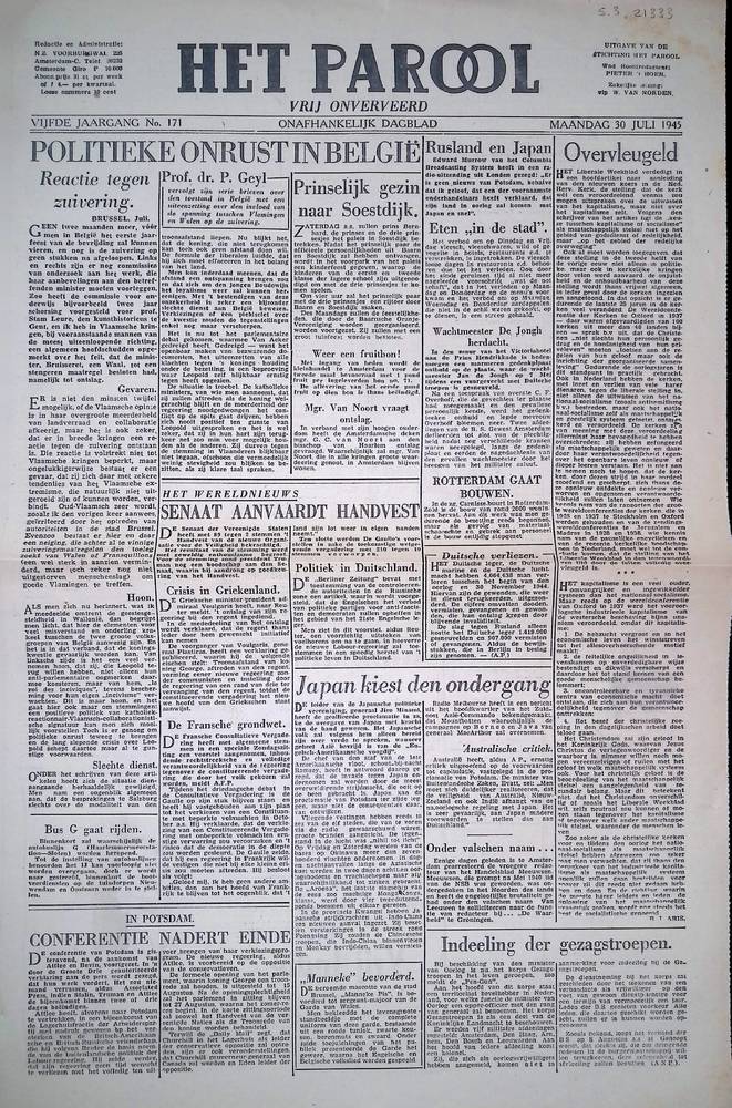 Vrij Nederland, gedrukt te Londen, 13 oktober 1945