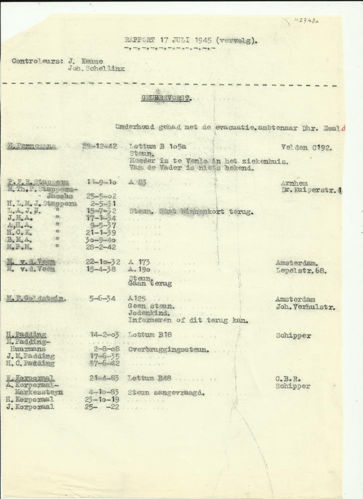 Rapport 17 juli 1945 bezoek Grubbenvorst door J. Sch...