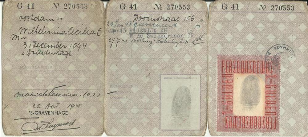 persoonsbewijs van Wilhelmina Cecilia Oostdam