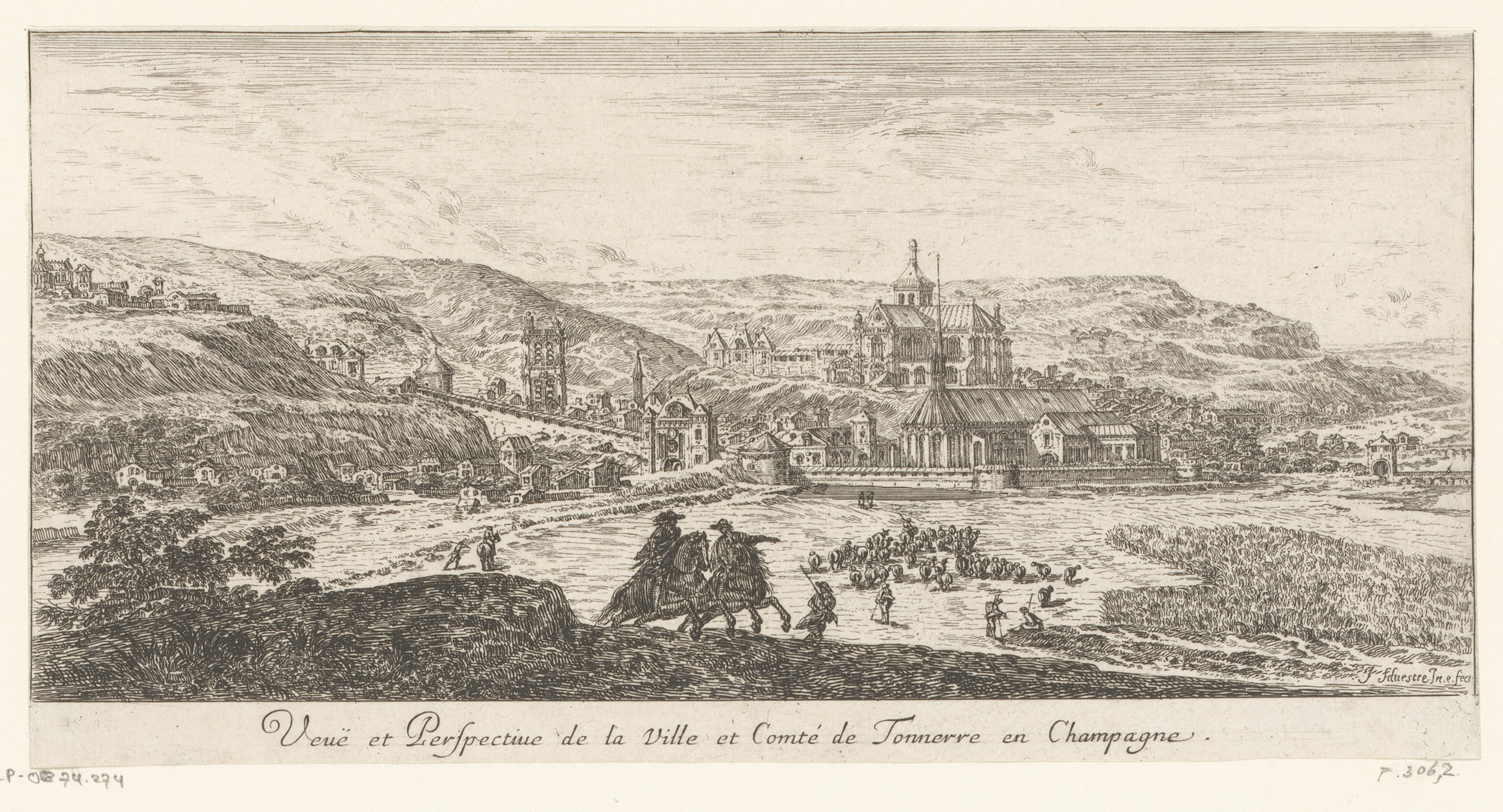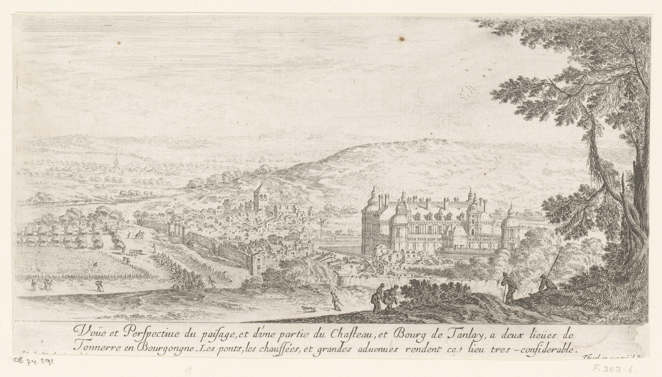 Landschap met het dorp Tanlay met rechts ervan het k...