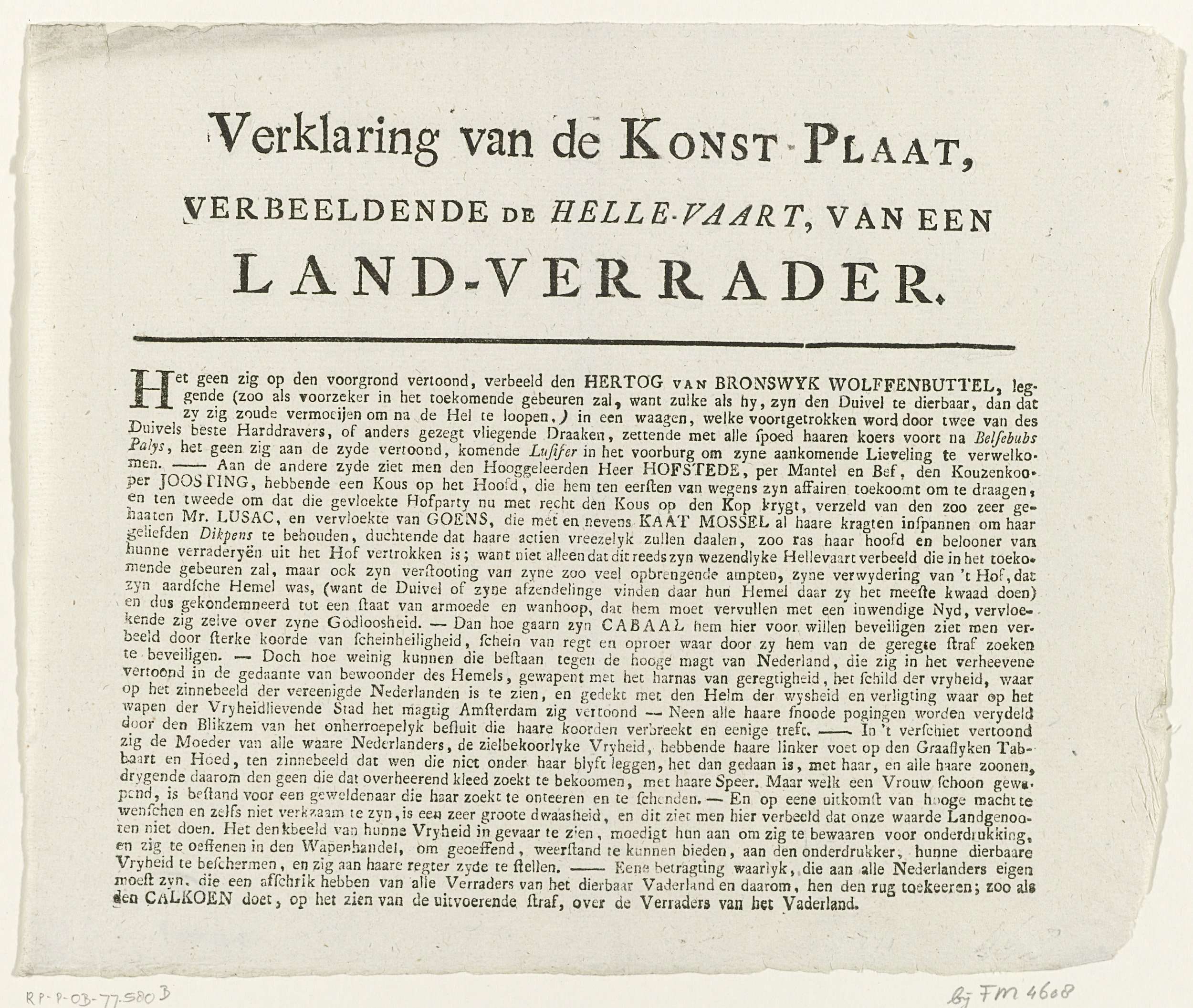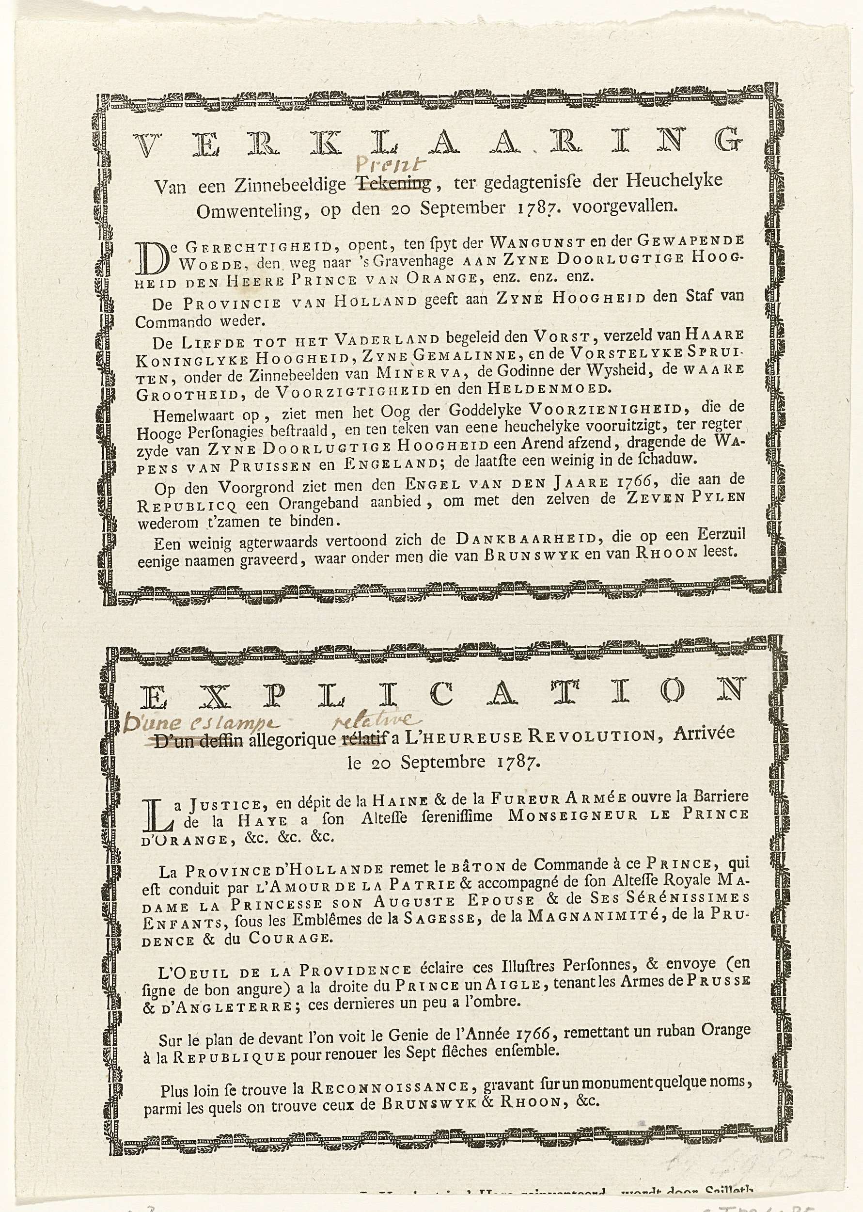 Verklaring bij de prent "De Gelukkige Dag", 1787