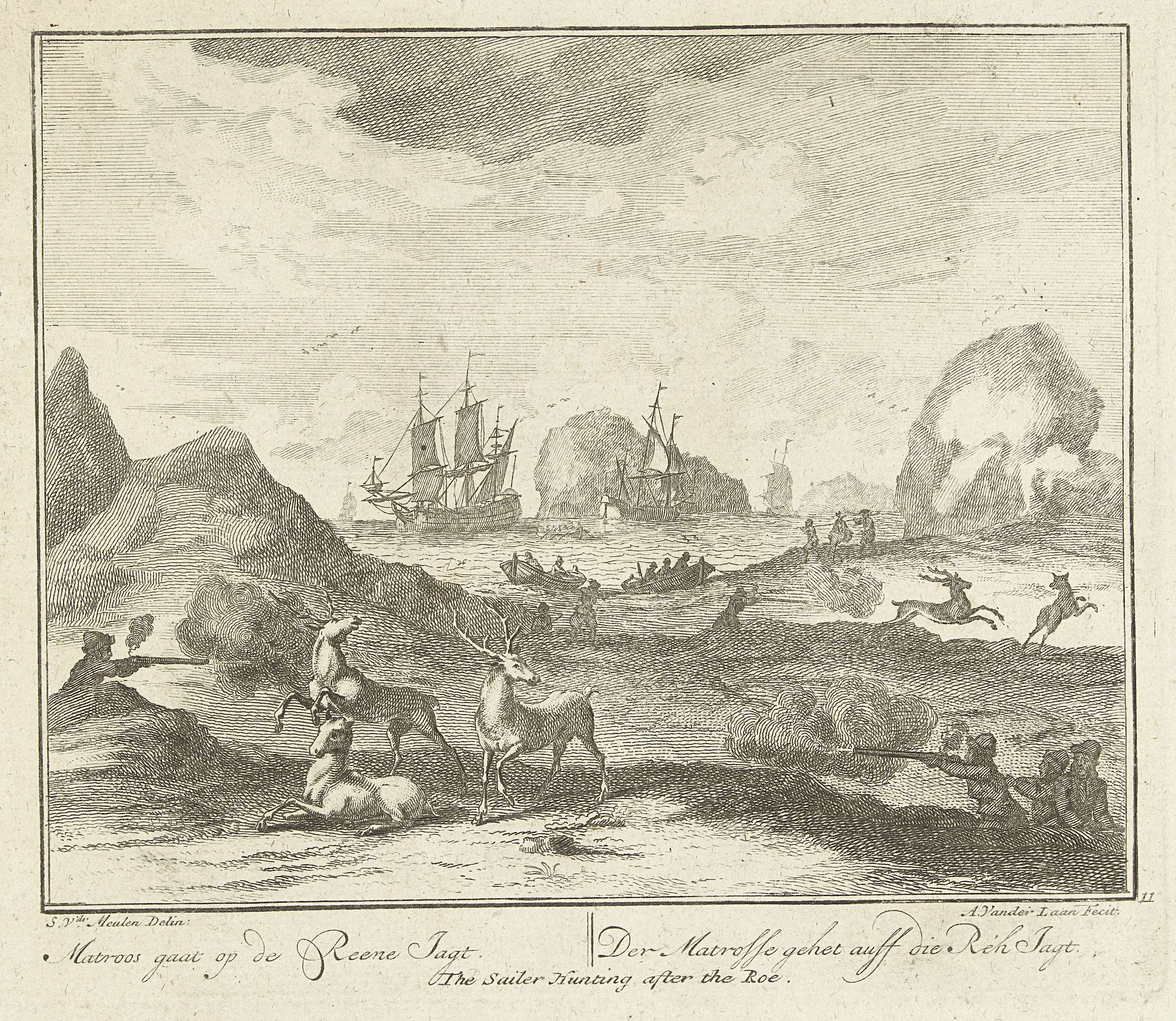 Matrozen jagend op herten, ca. 1725
