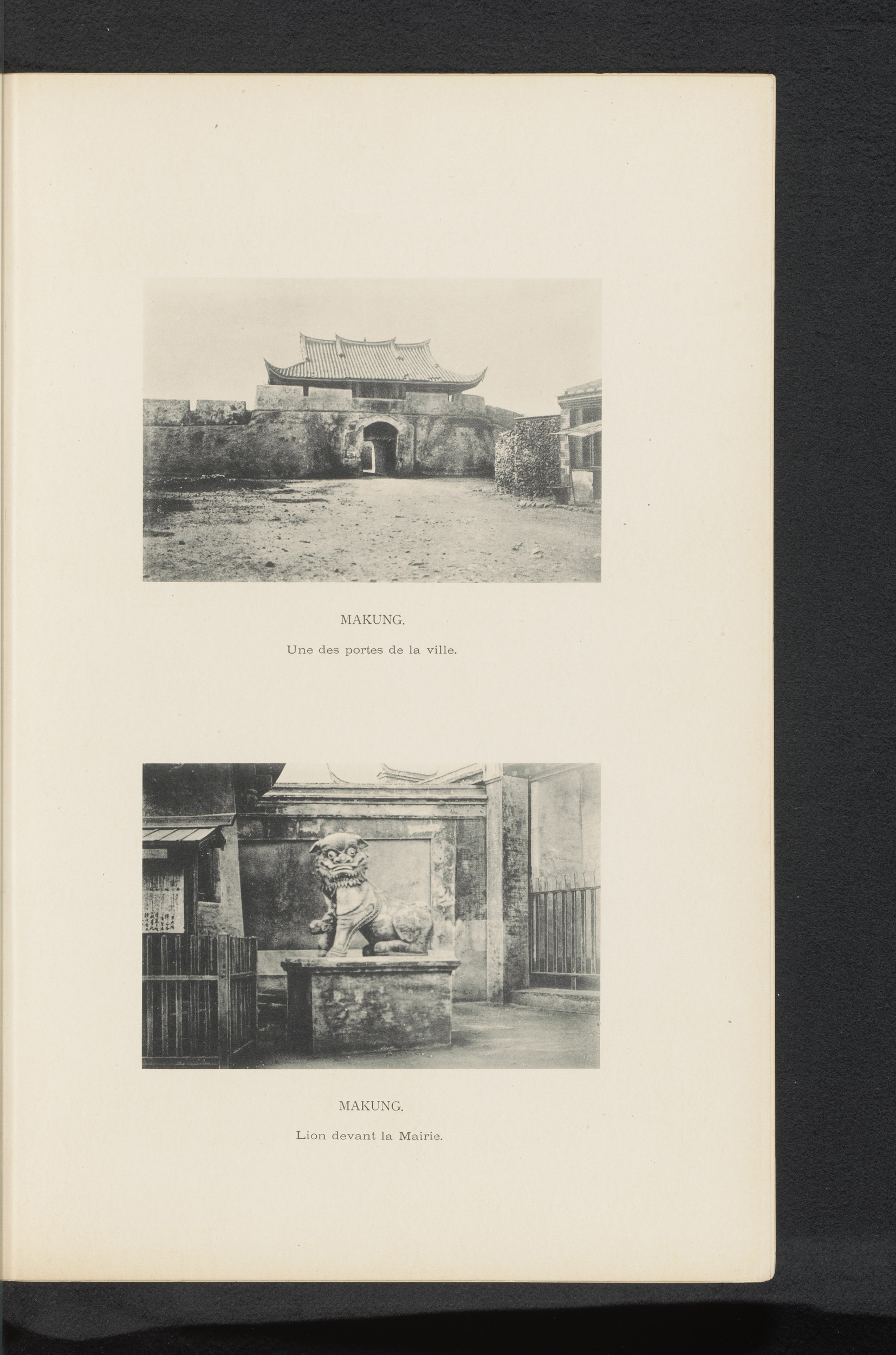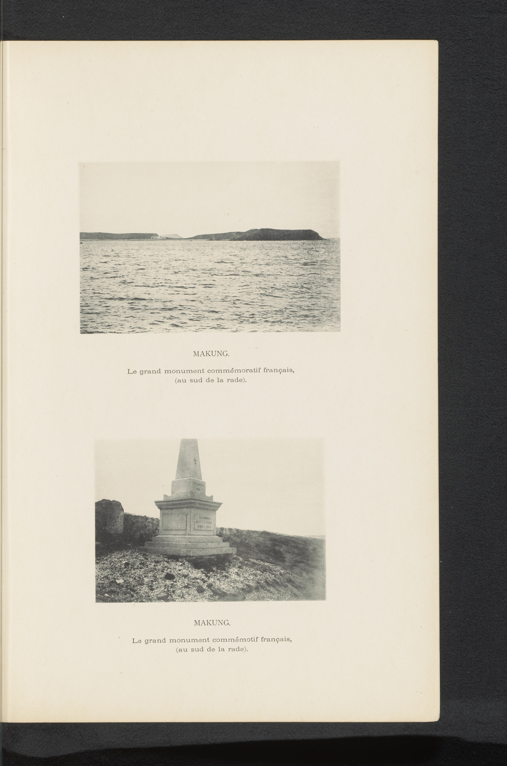Gezicht op Magong en een Frans herdenkingsmonument
