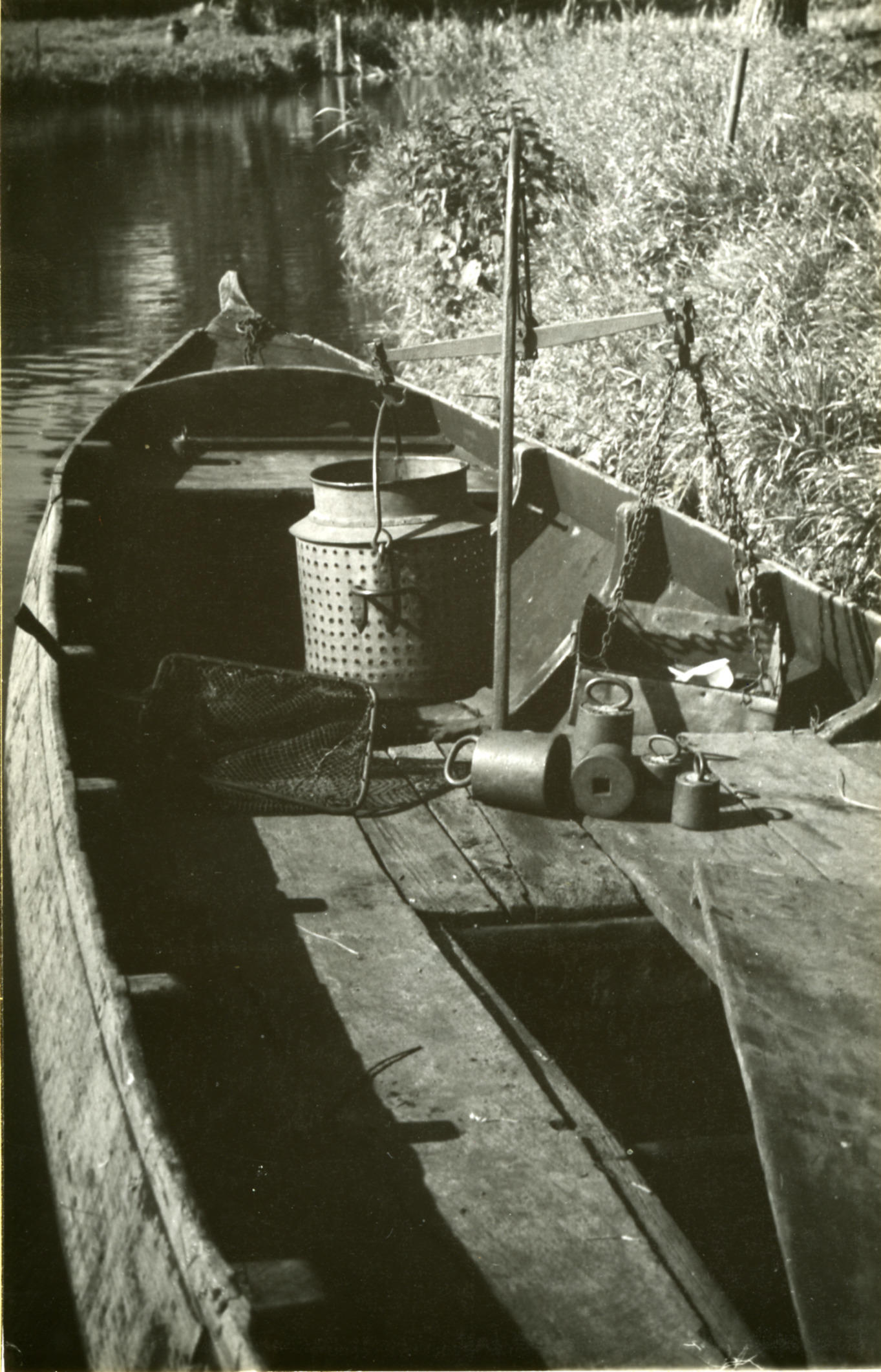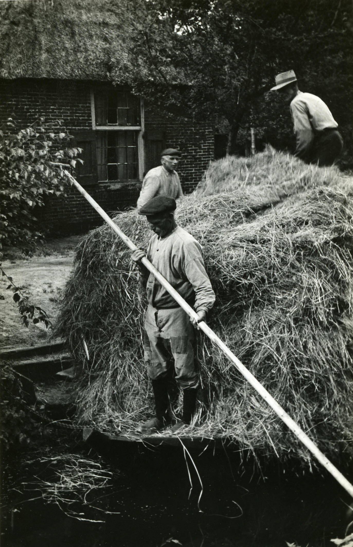 Hooi afladen, Giethoorn, 1947 (zwart-wit foto)