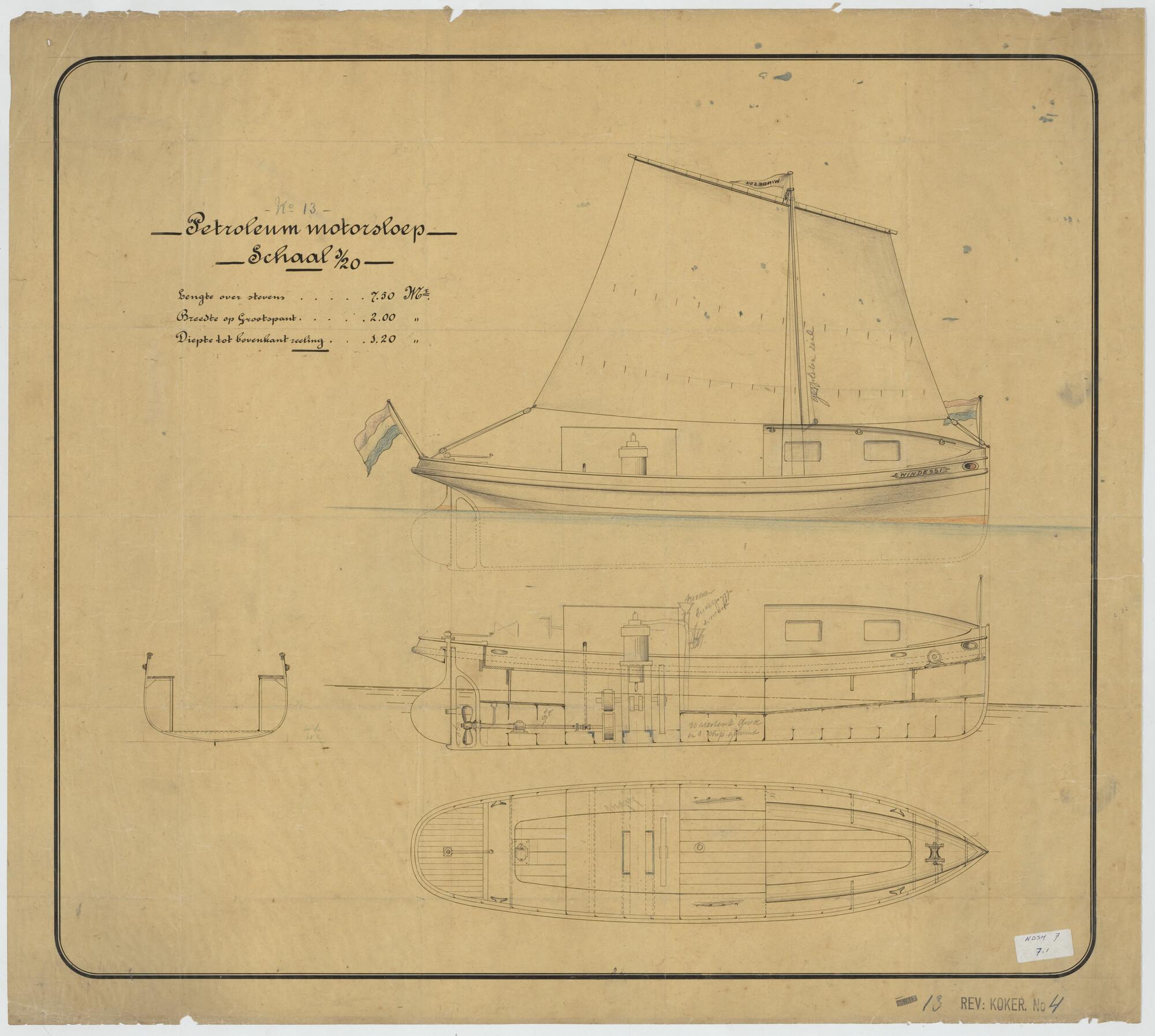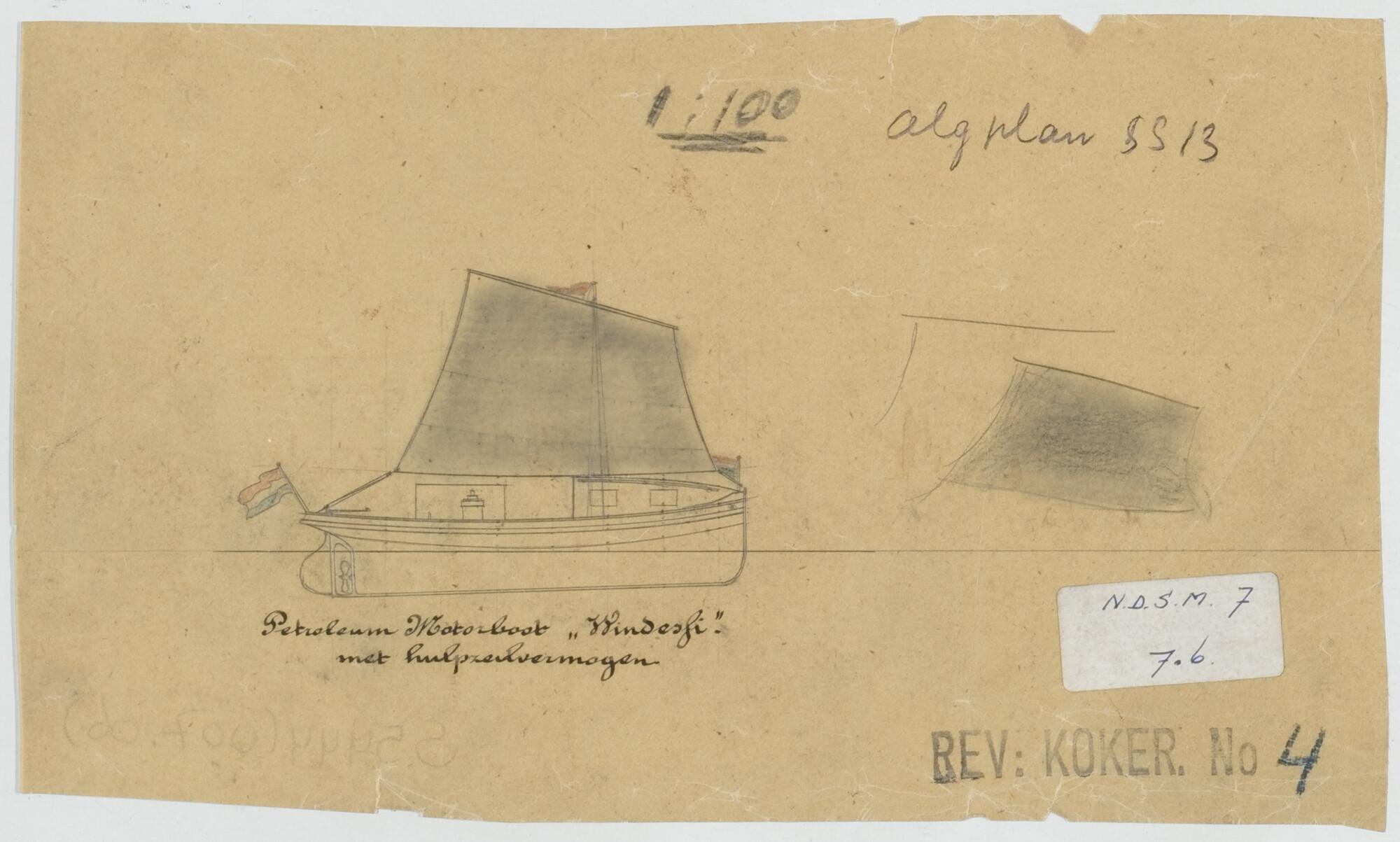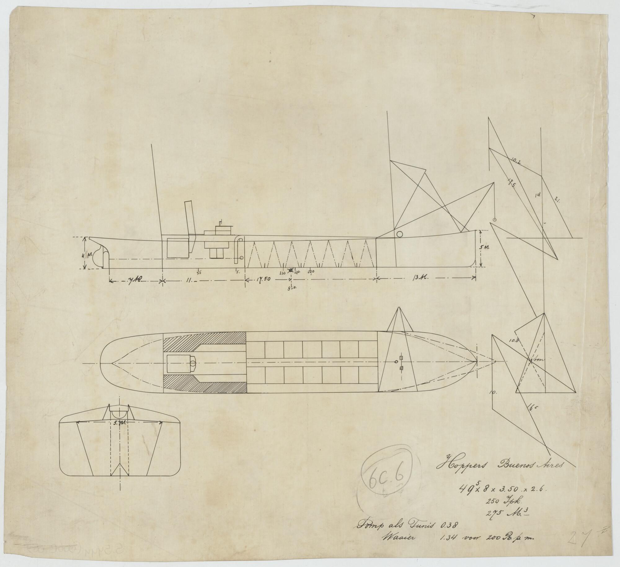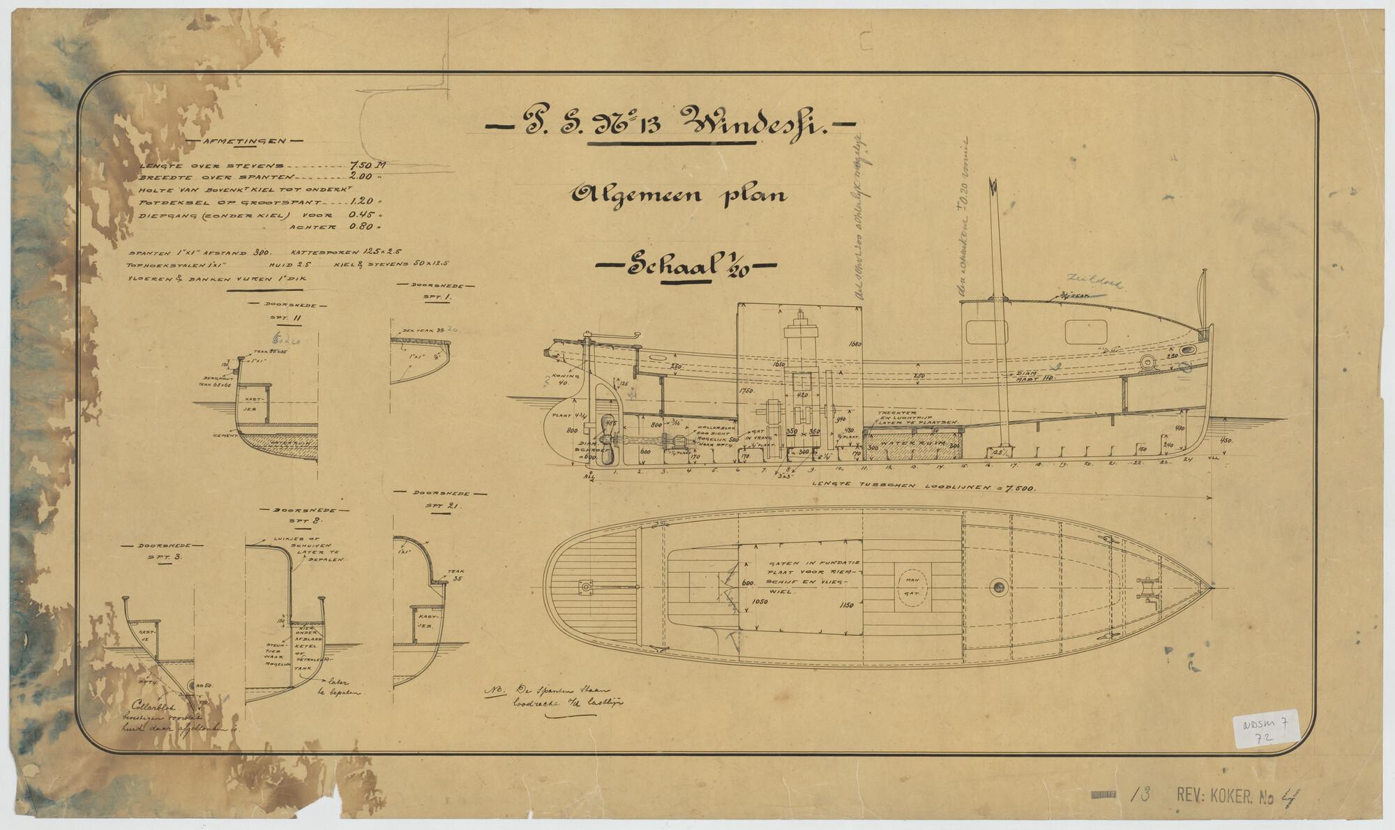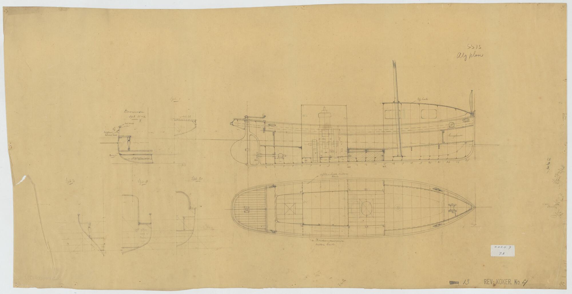 Lijnentekening van het passagiersschip ss. Prins Wil...