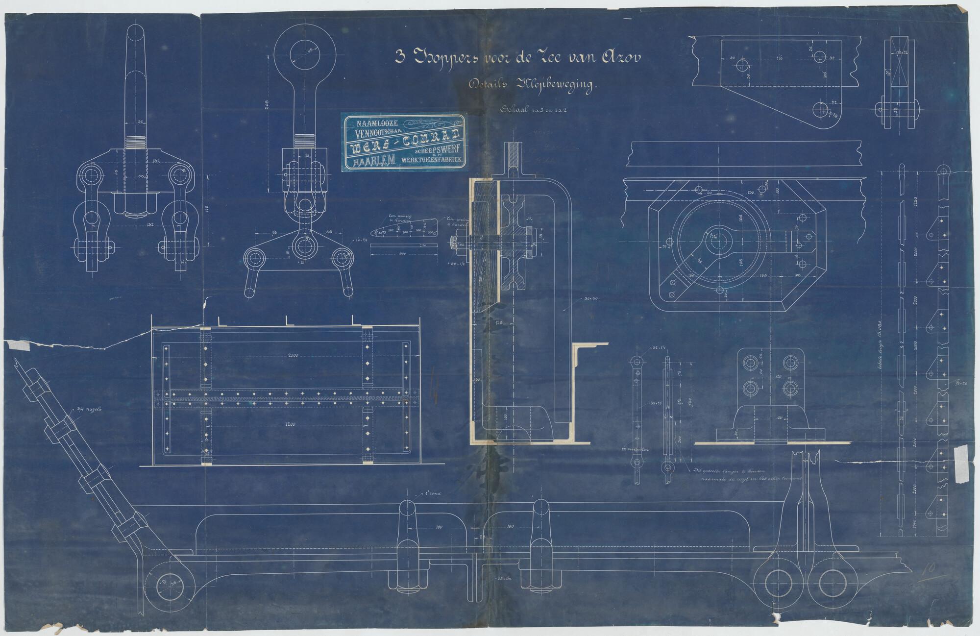 Overbrenging stuurwiel naar roer van een hopperzuiger