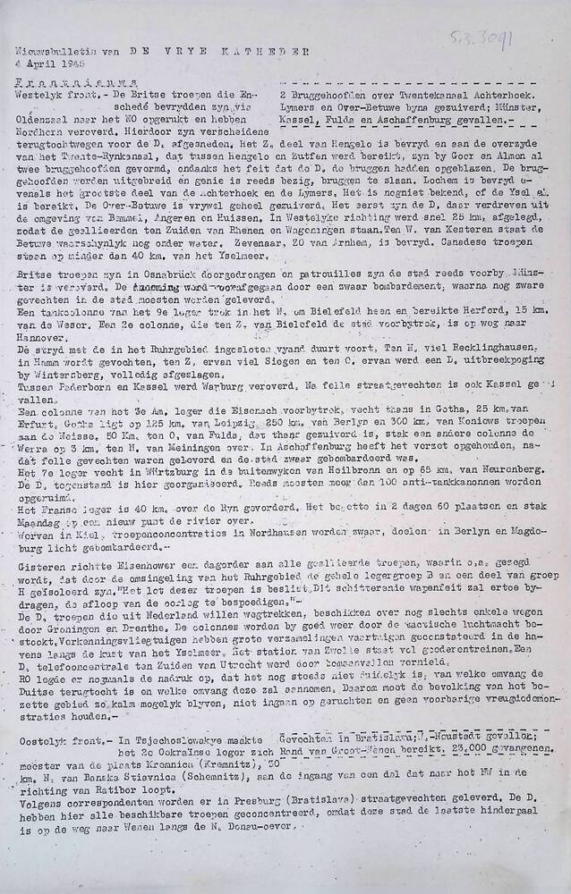 De Vrije Katheder ( Nieuws bulletin), 4 April 1945