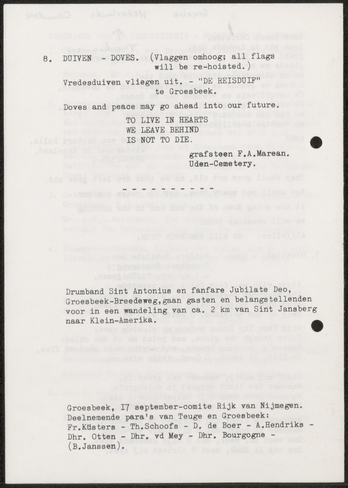 Toegangskaart voor de onthulling van het Groesbeek m...