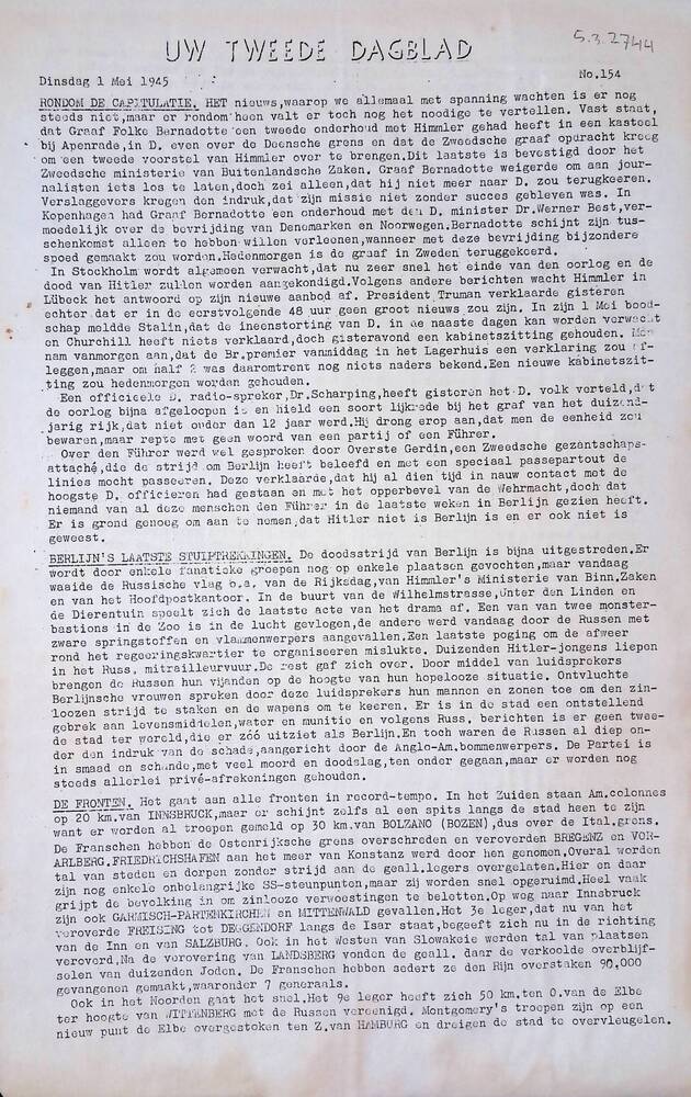 Uw Tweede Dagblad, No.154 Dinsdag 1 Mei 1945