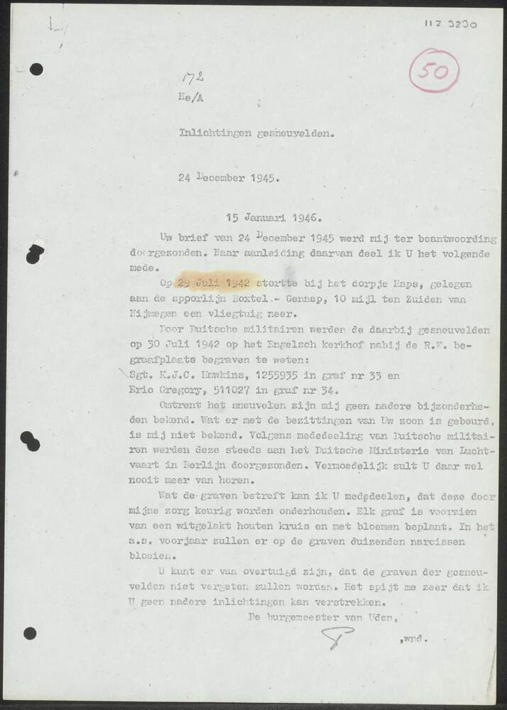 Brief van zijn moeder, Richard en Gertrud aan Hubert...