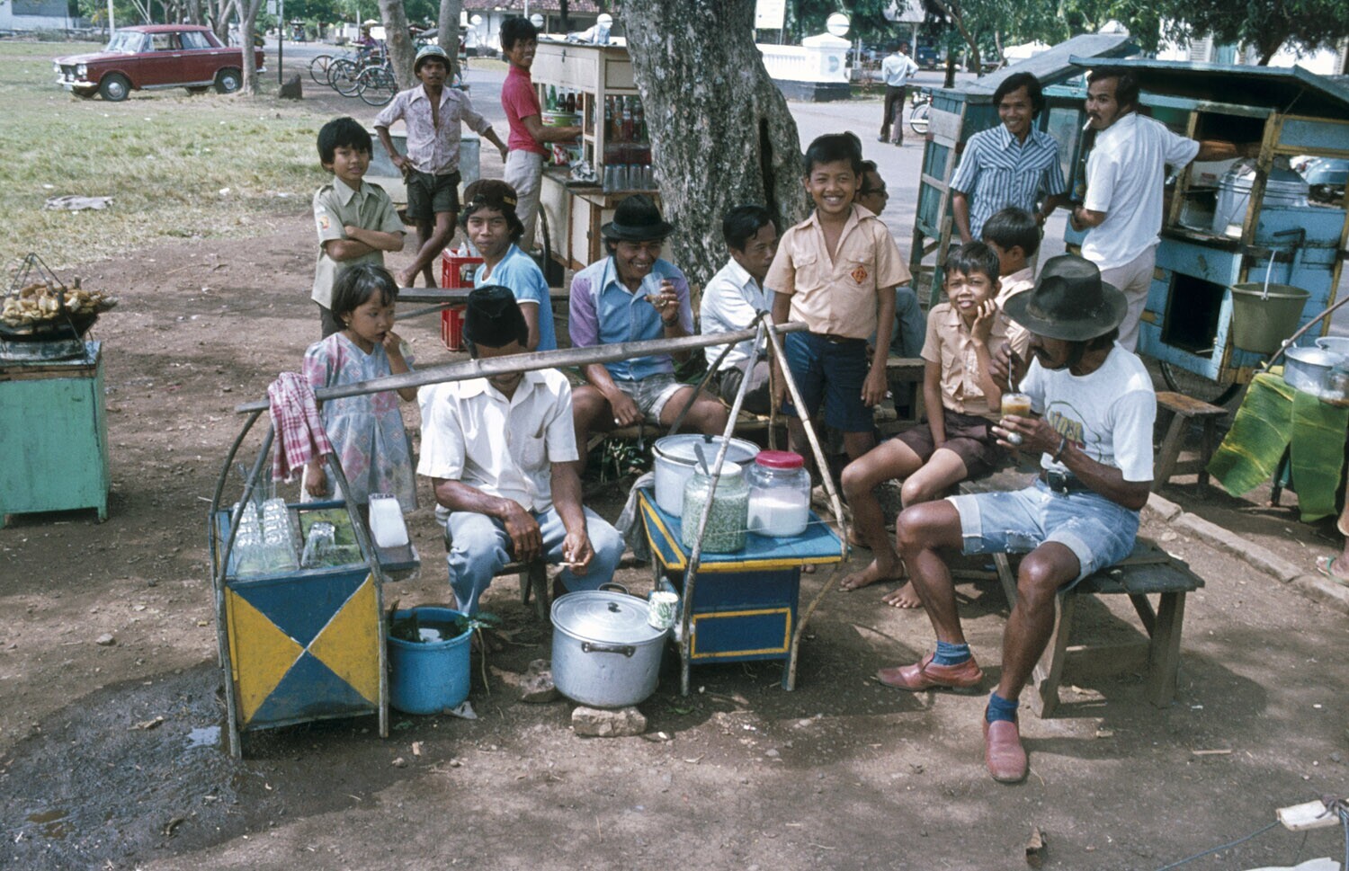 Schaafijsverkoper in een parkje in Jakarta, West-Java.