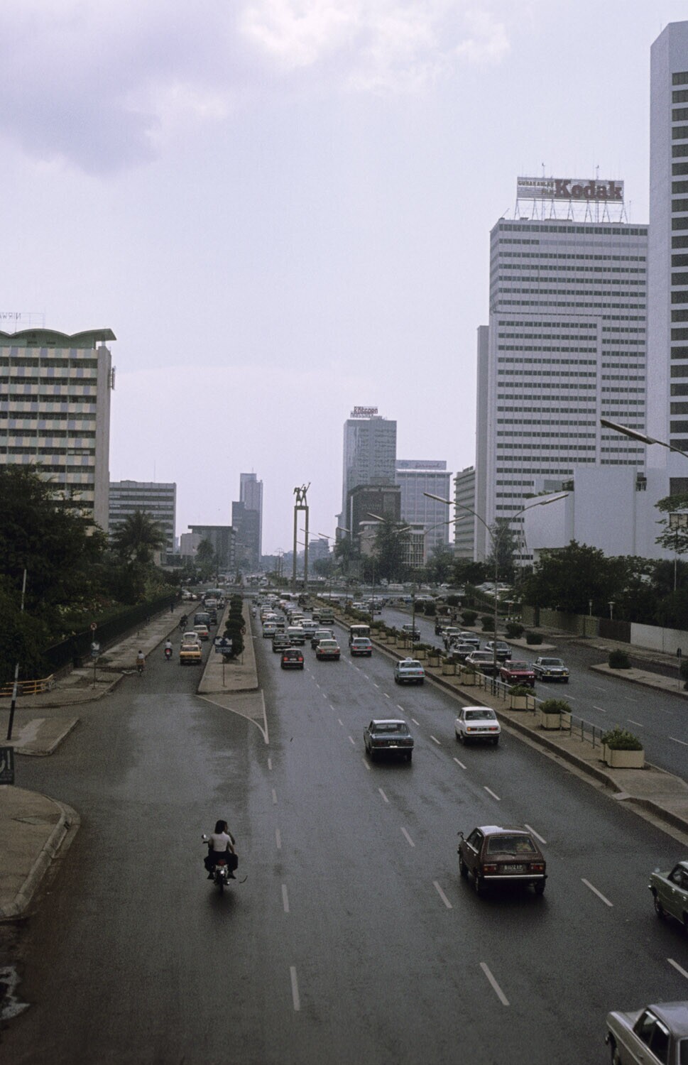Traffic on Jalan Thamrin in front of the Welcome Statue