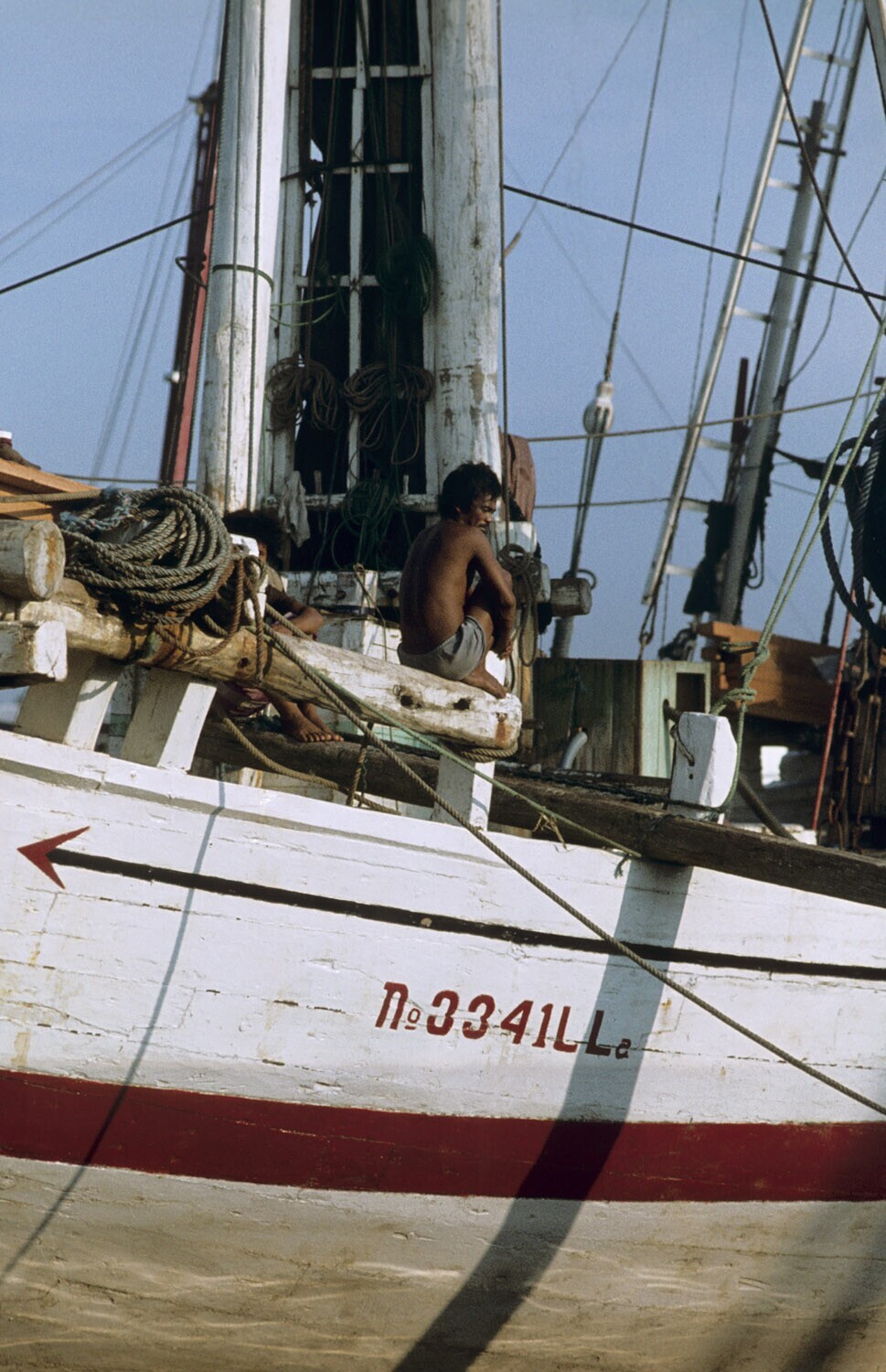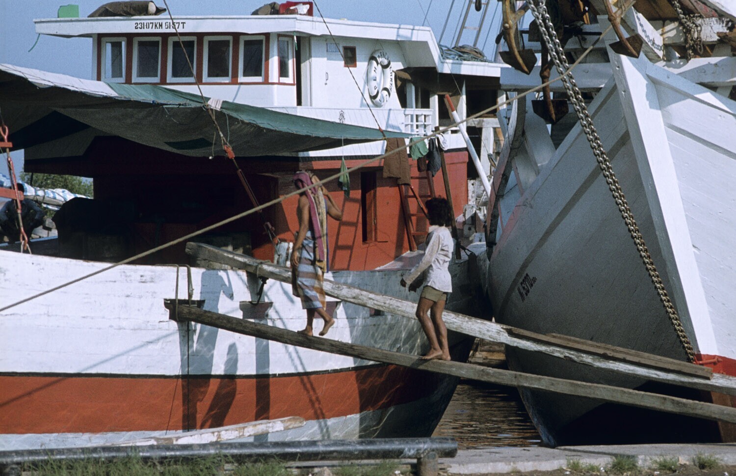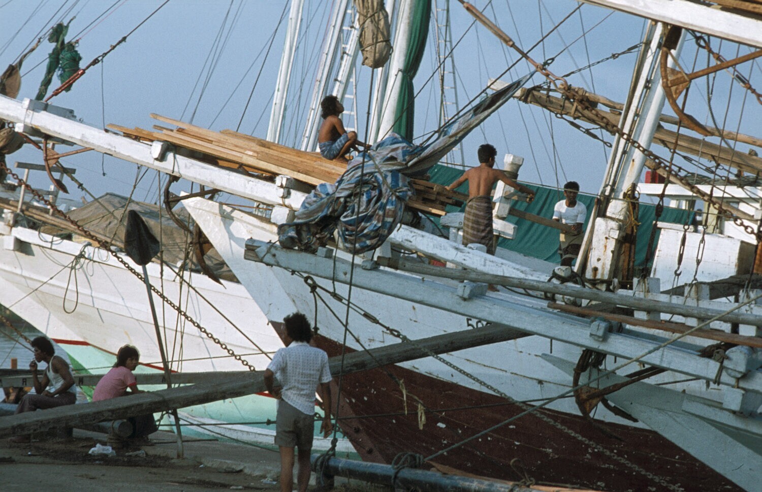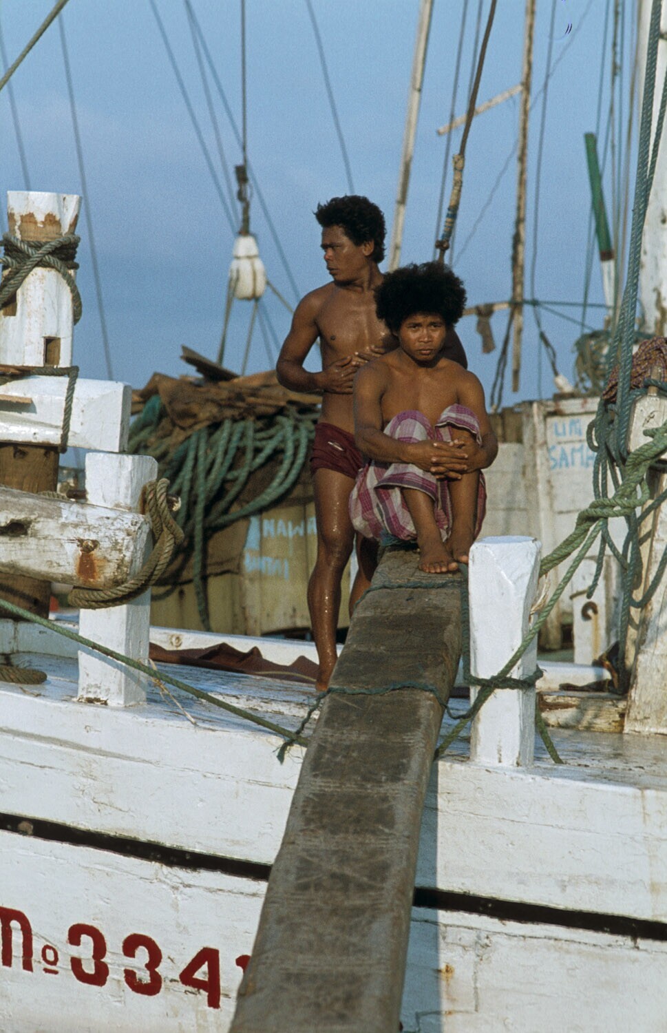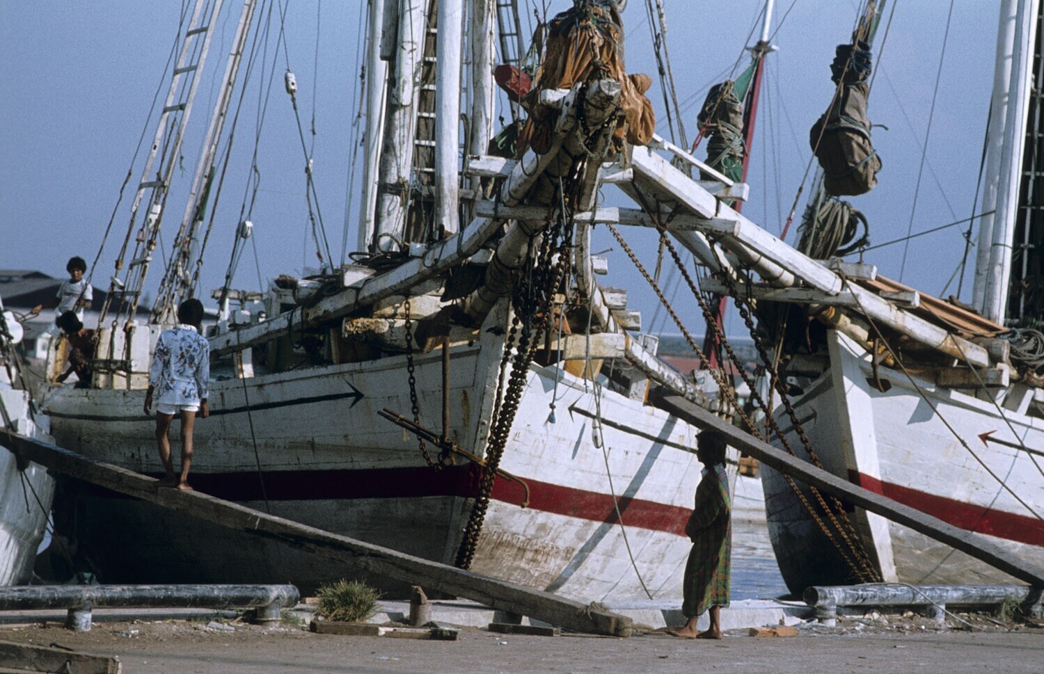 Climbing up the mast of a Buginese proa in Sunda Kel...