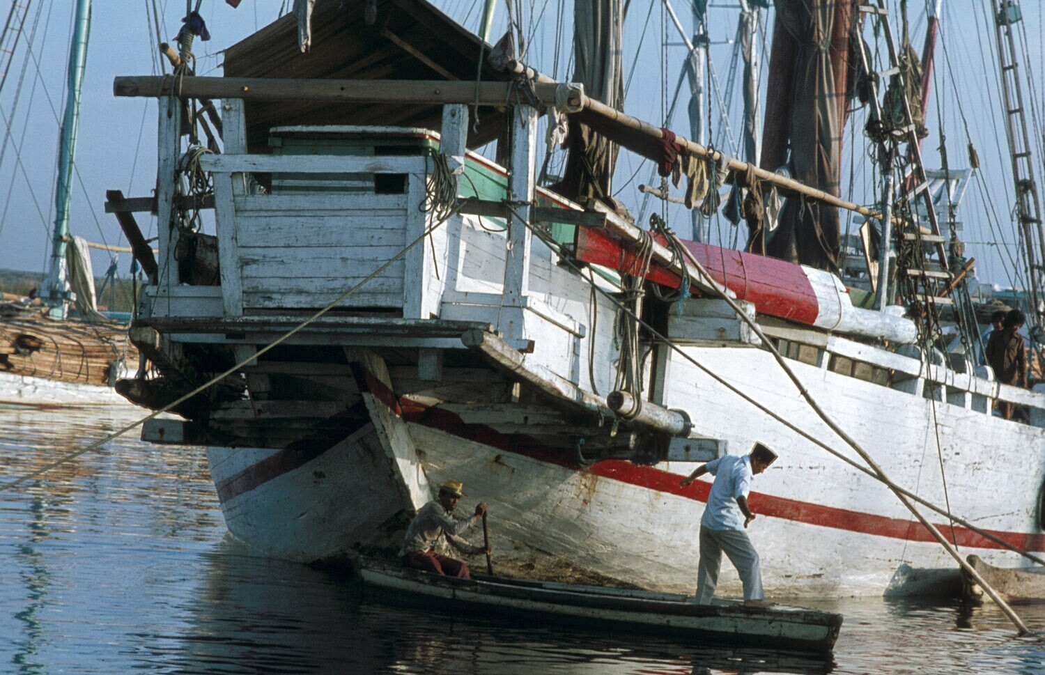 Rowing boat and Buginese proa in Sunda Kelapa harbour