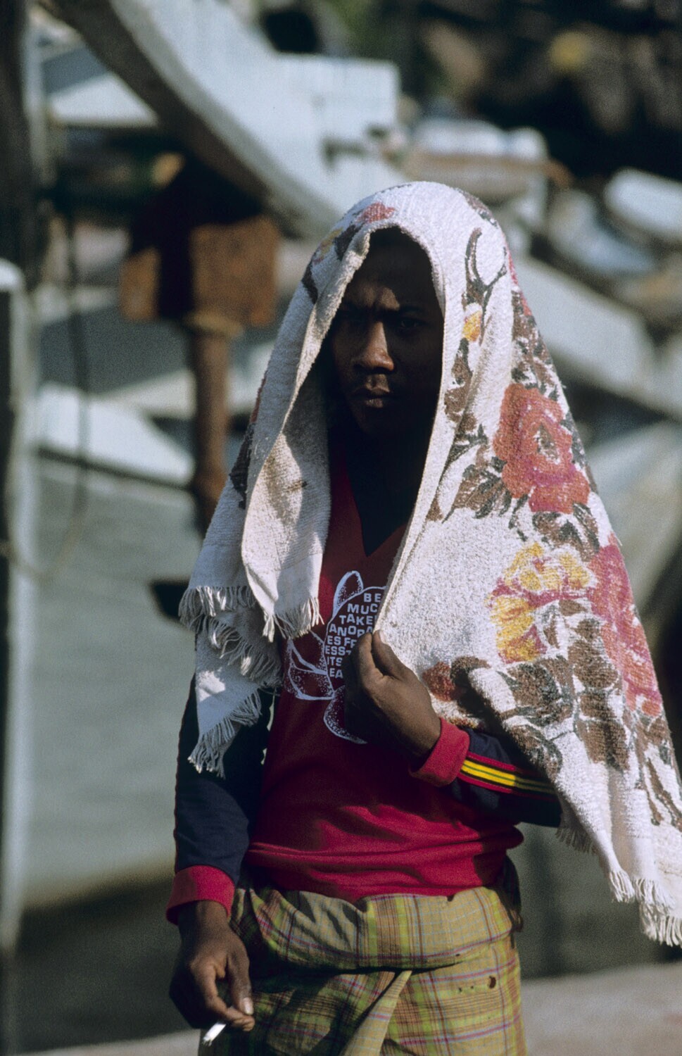 Portret van een verkoper van etenswaren in de haven ...