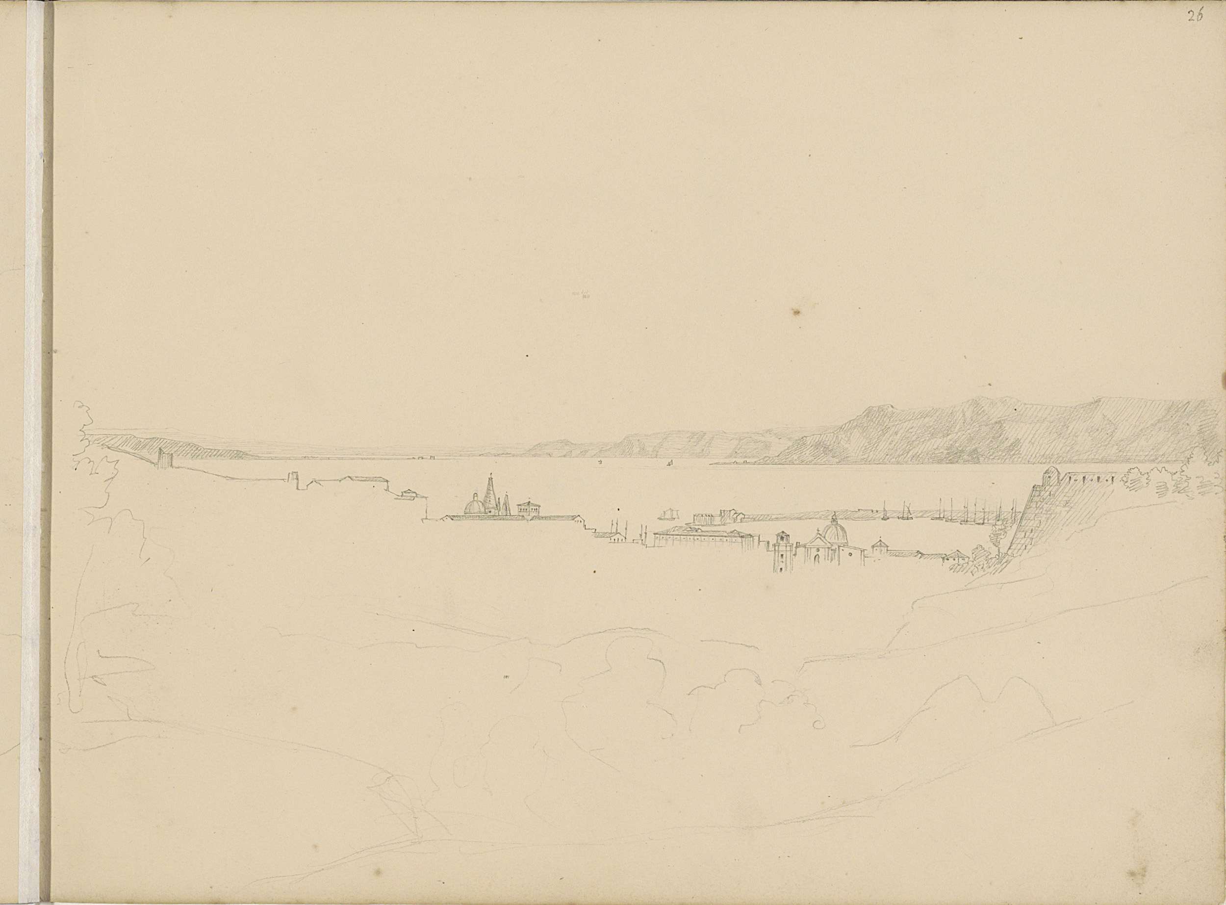 Gezicht op Lago di Lucrino en Monte Nuovo bij Napels