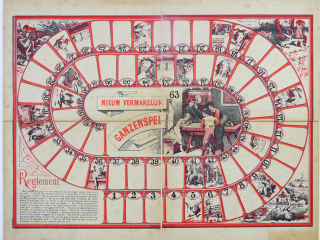 Speelbord van Nieuw Vermakelijk Ganzenspel
