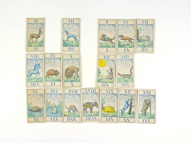 Kaartspel, deels met afbeeldingen van dieren