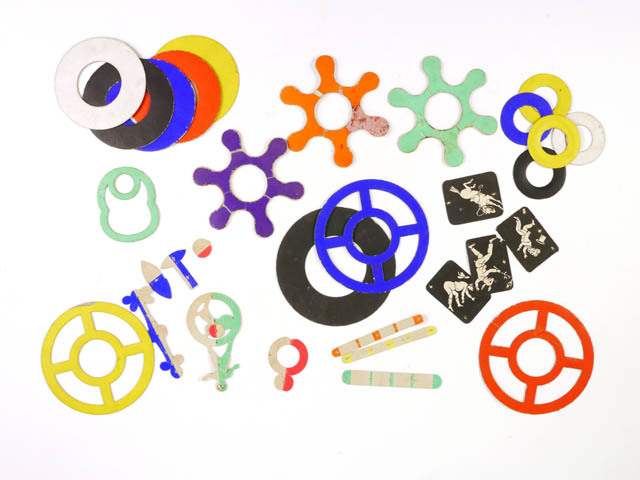 Optische tol met papieren cirkels en 4 thaumatropen