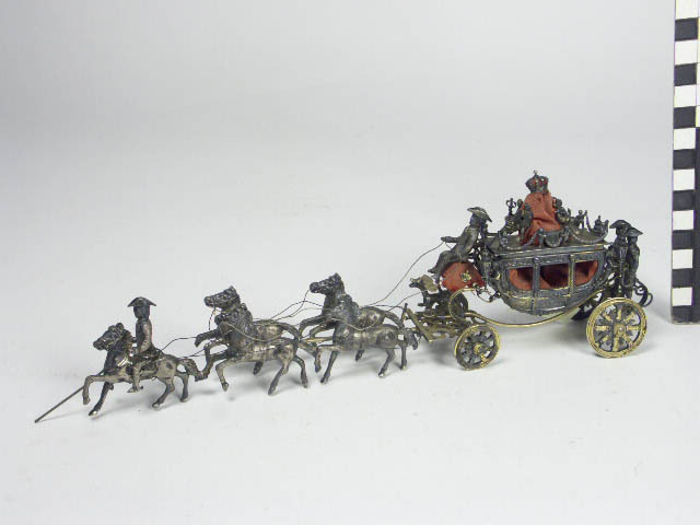 Model van gouden koets met 5 paarden, zilver met ver...