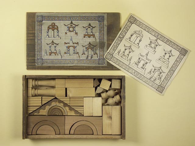 1) blokkendoos met voorbeeld, Jean Jean; 2) Kistje m...