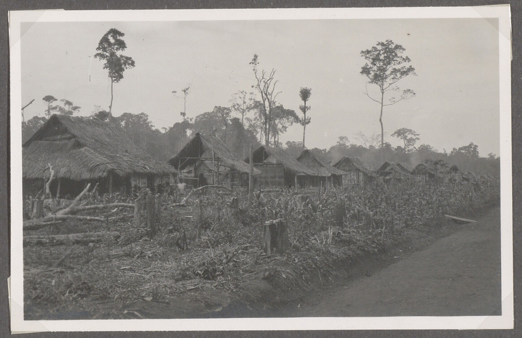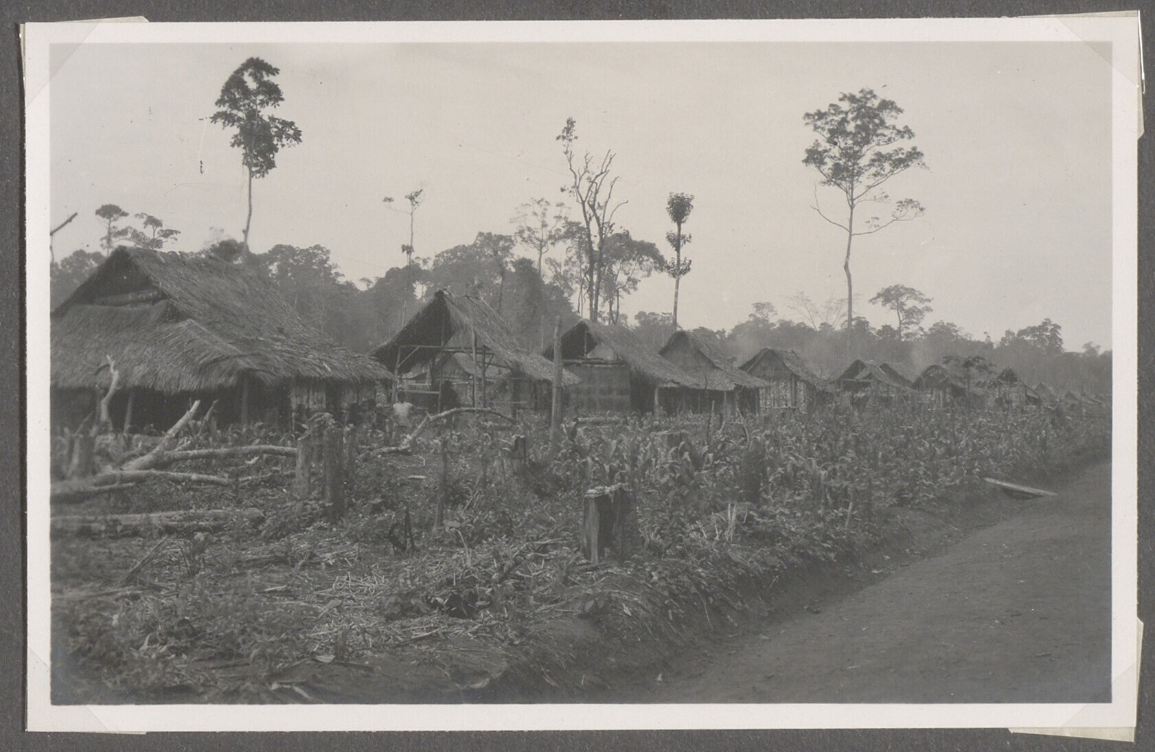 Gezicht op een dorp met kolonistenwoningen