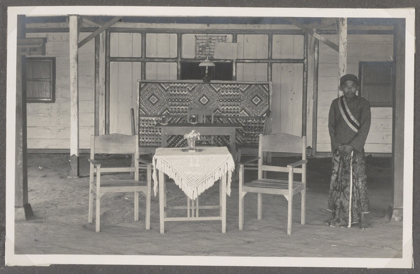 Een Javaanse transmigrant in zijn woning op Sumatra