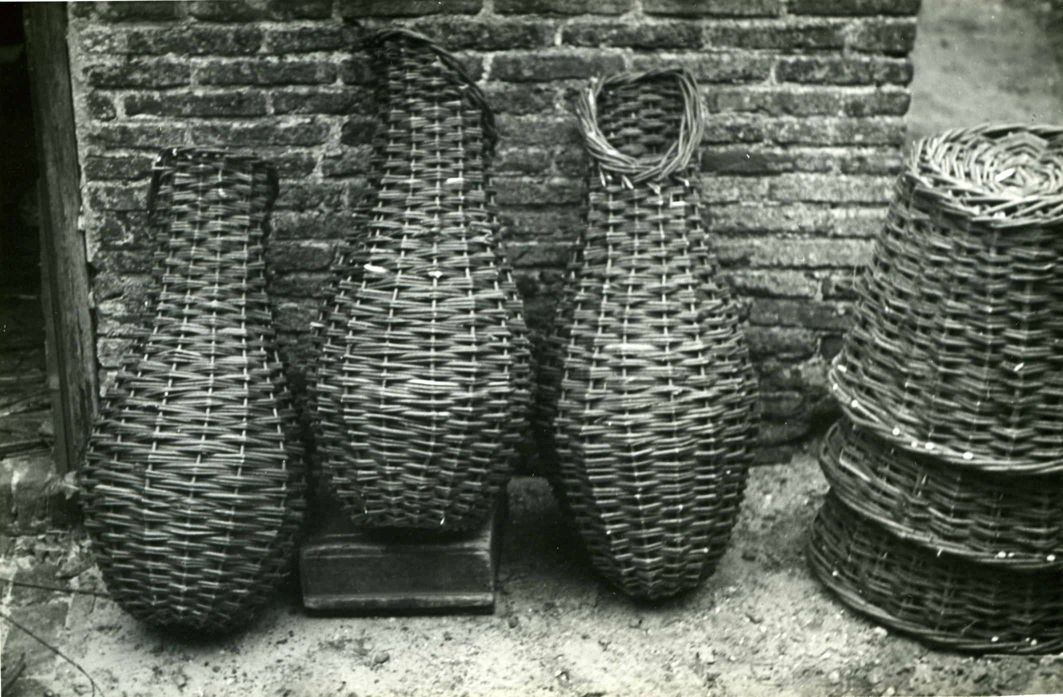 Eendenkorven en manden, Giethoorn, 1947 (zwart-wit f...