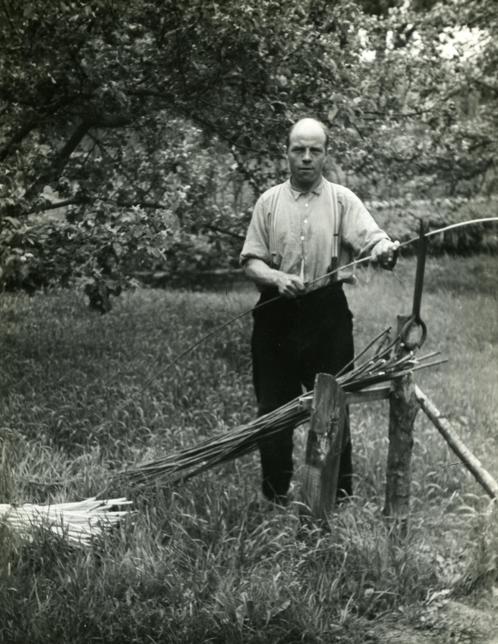 Twijgen schillen, Giethoorn, 1947 (zwart-wit foto)