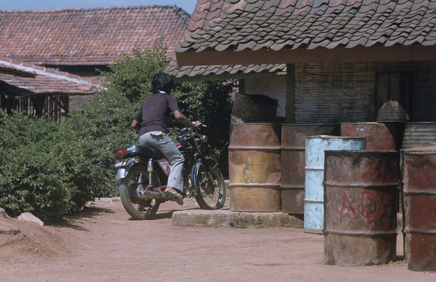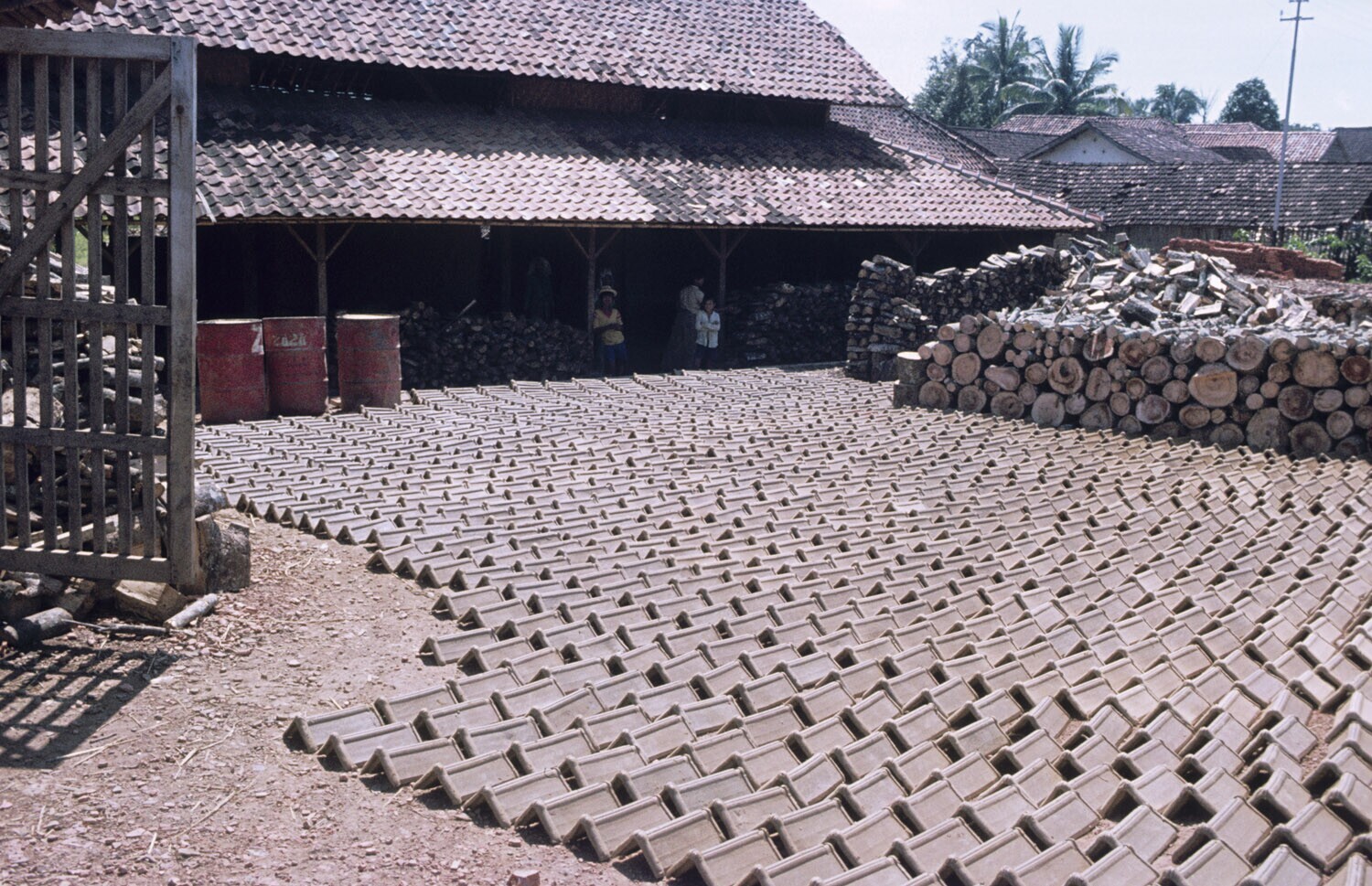 Oliedrums, steenfabrieken bij Plered, West-Java.