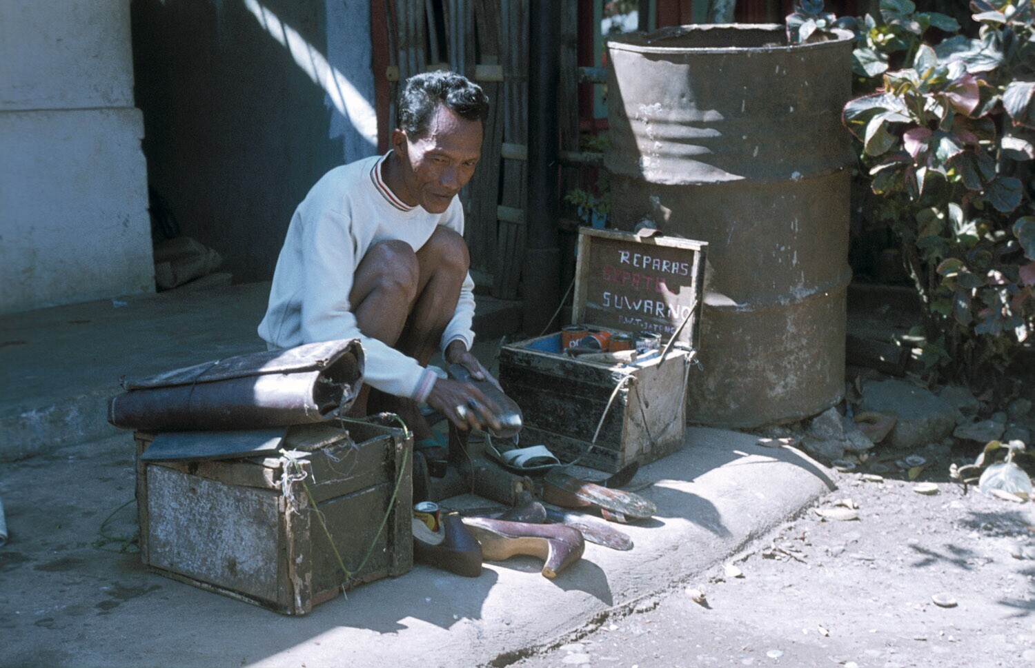 Reizende schoenmaker. Deze man gaat van deur tot deu...