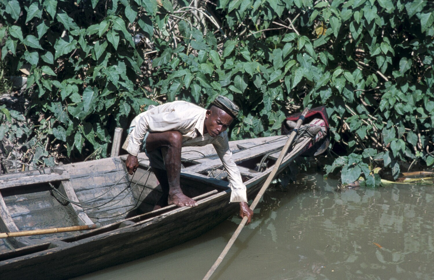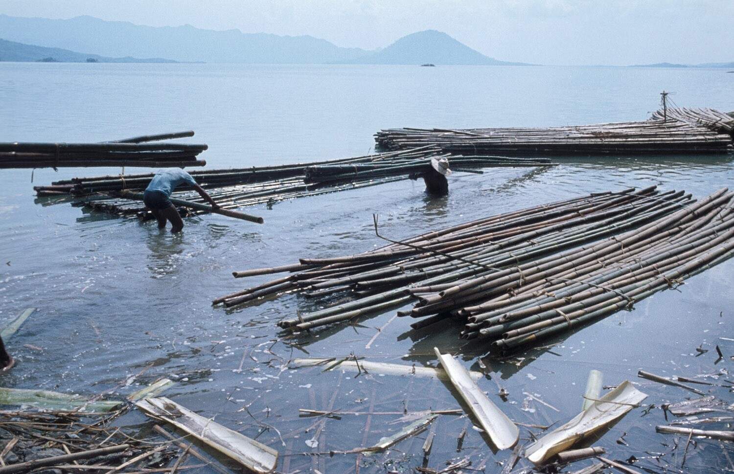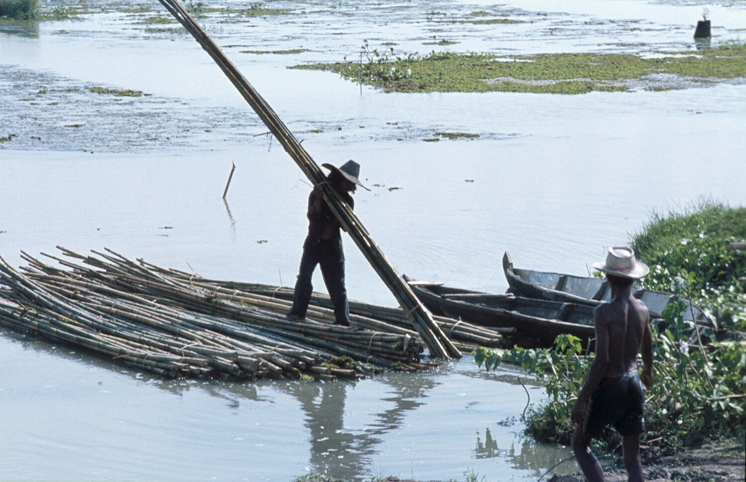 Transport van bamboe over het Curugmeer, Jatiluhur, ...