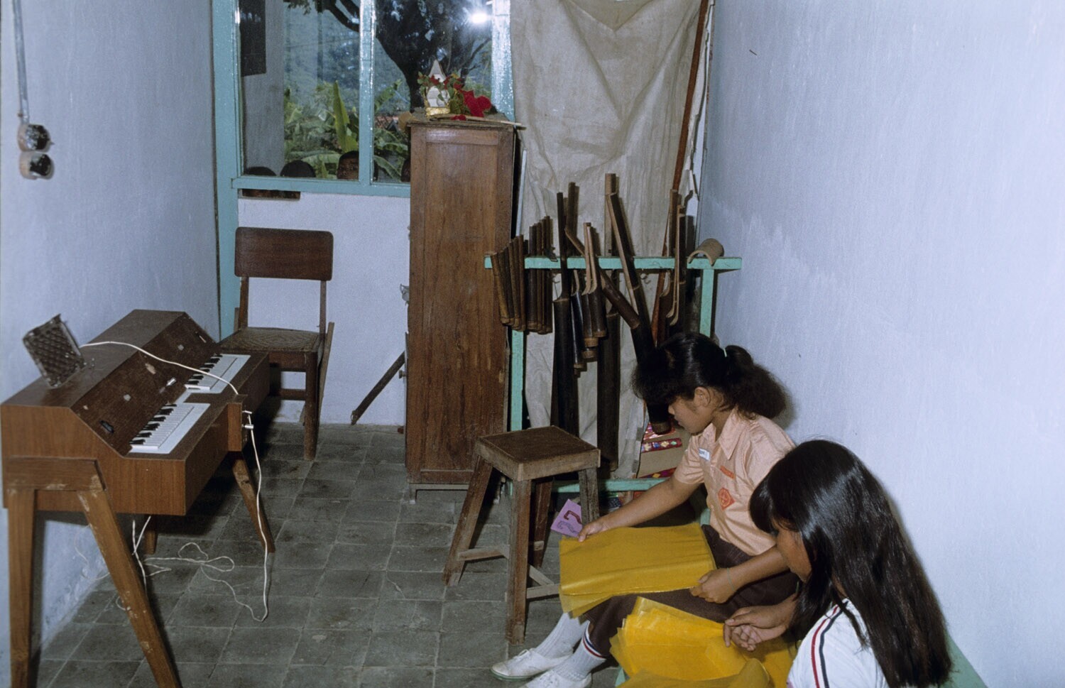 'Twee meisjes in het muzieklokaal; lagere school te ...