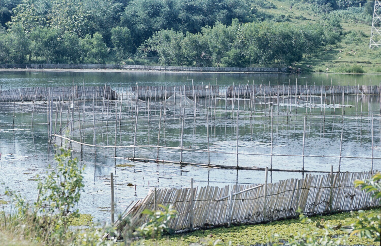 Visvallen (bamboestokken verbonden aan een visnet) i...