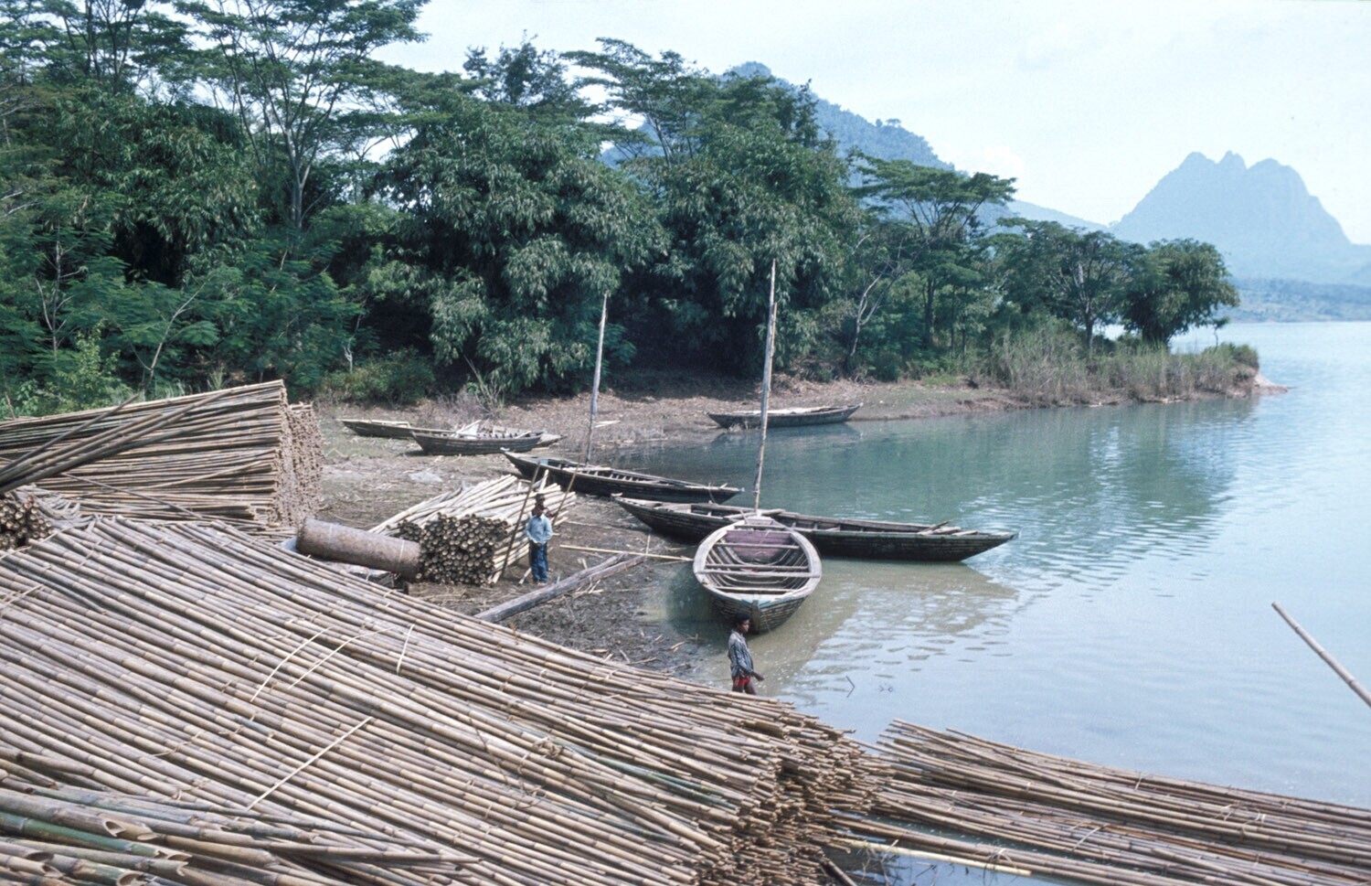 Tijdelijke opslag van bamboe langs het Curug-meer, J...