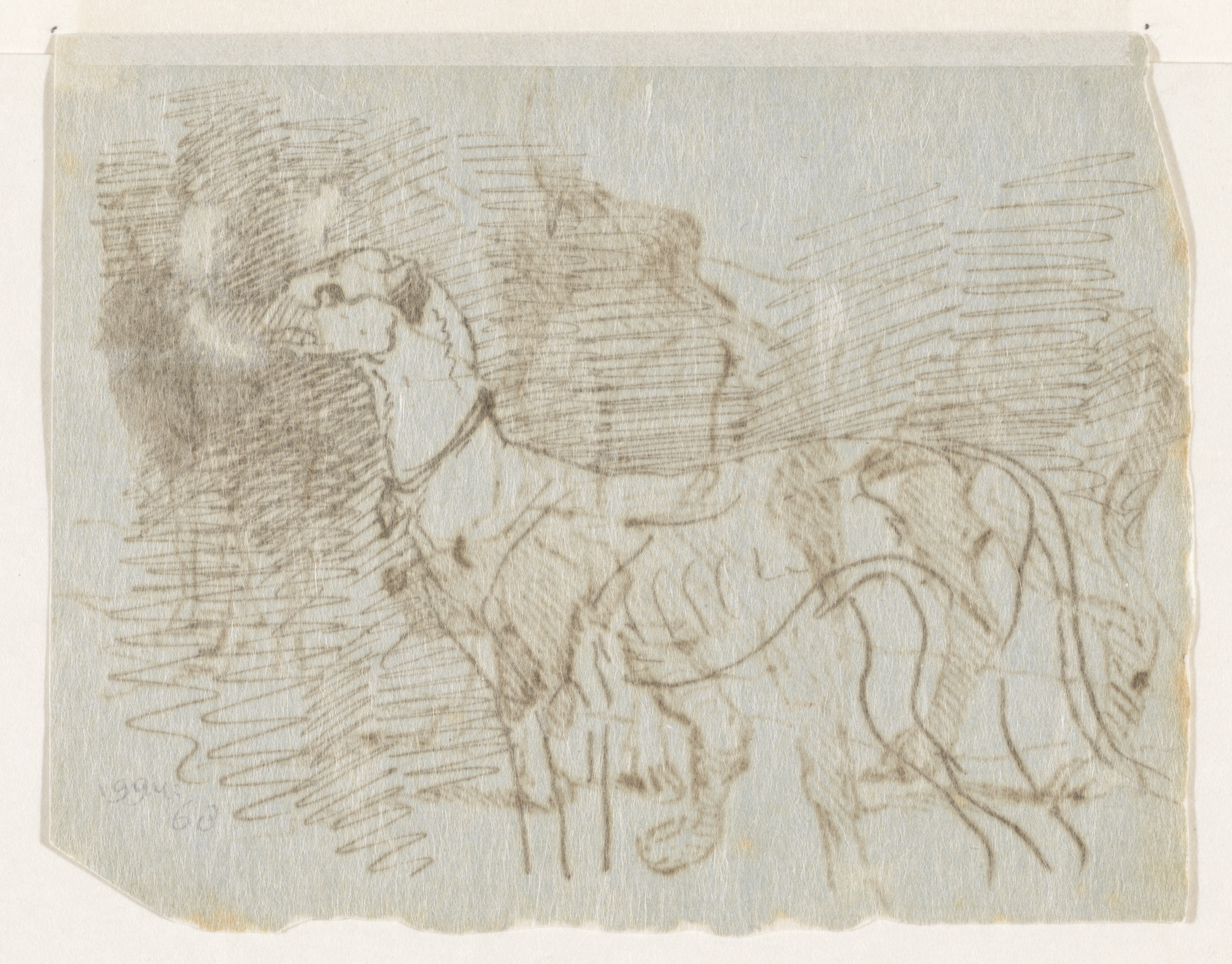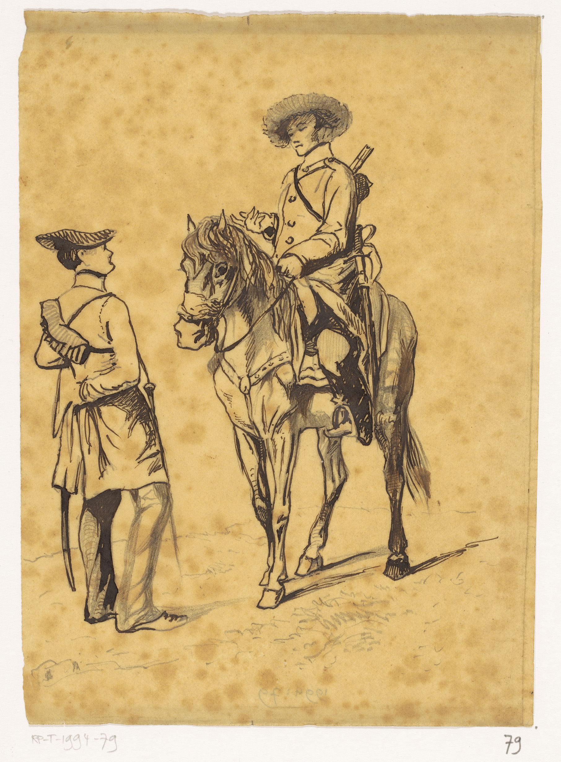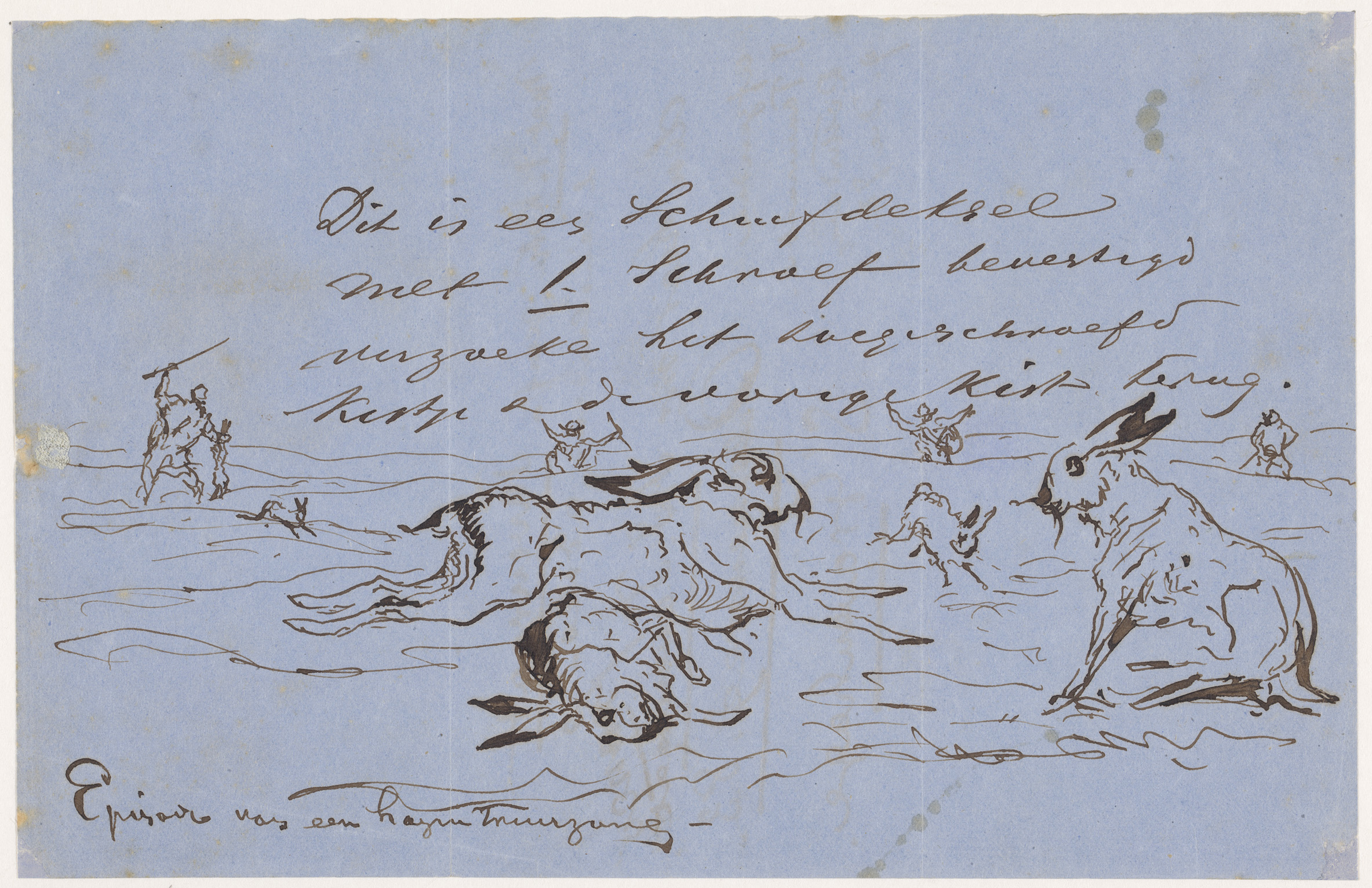 Twee schetsjes van een jager op een jaagpad